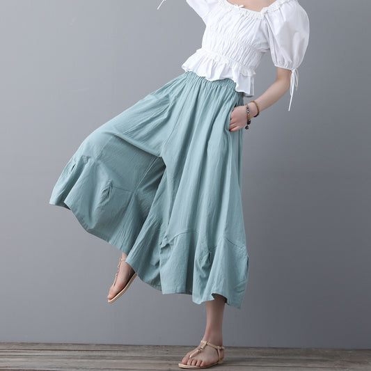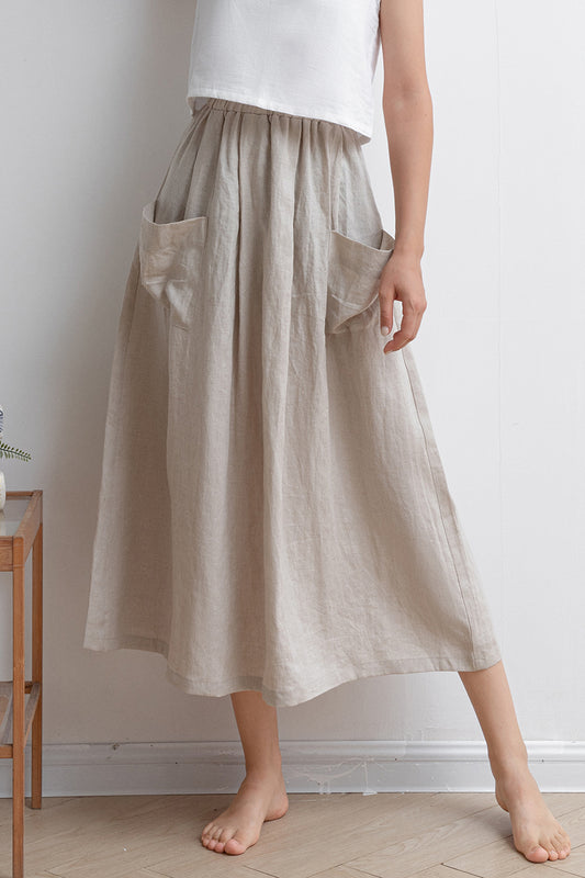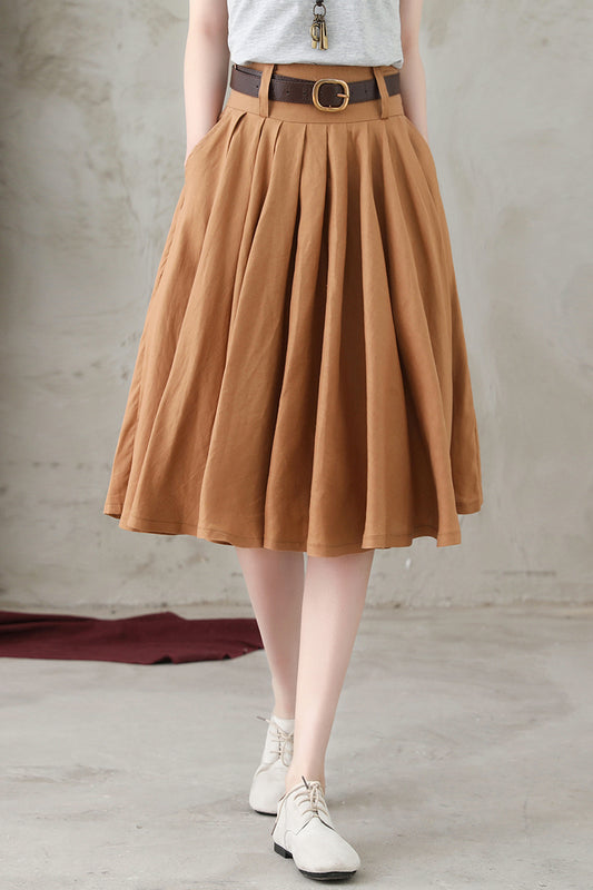 Causal Pleated Swing Linen Skirt C2734-Size XS #CK2200583
