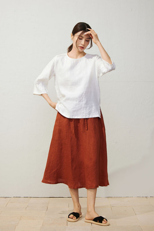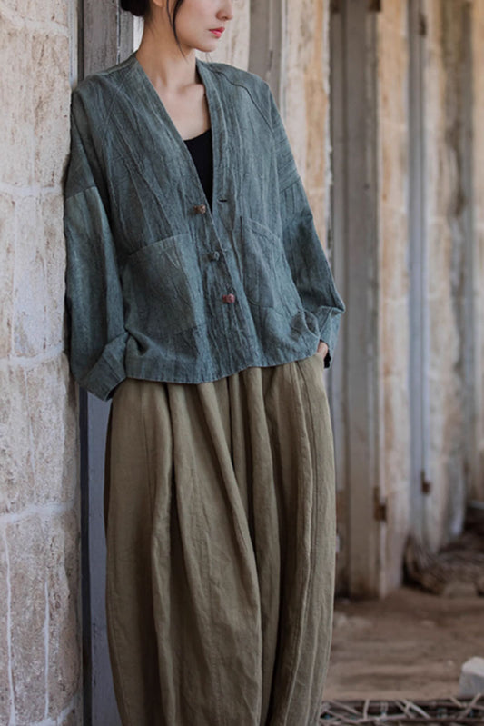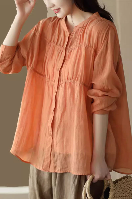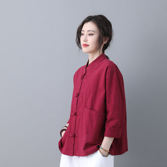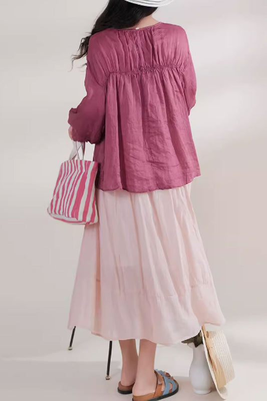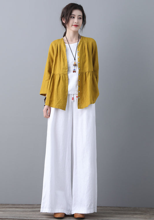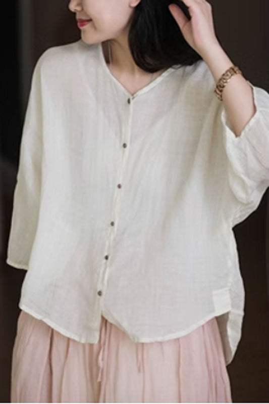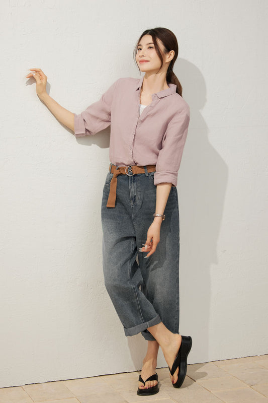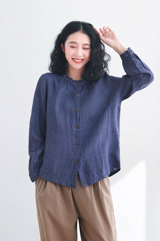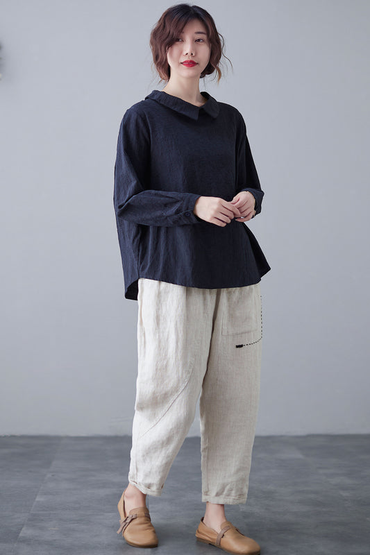 Women Casual Long Sleeves Linen Shirt Tops C1849