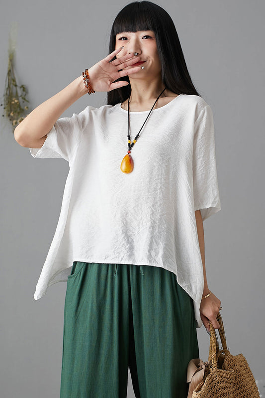 Oversize Casual Linen Blouses in White C2675- Size L #CK2200057