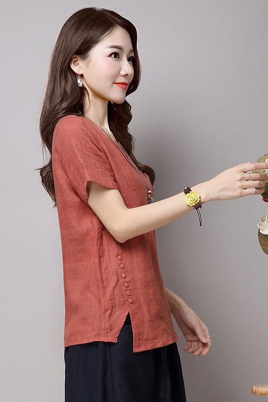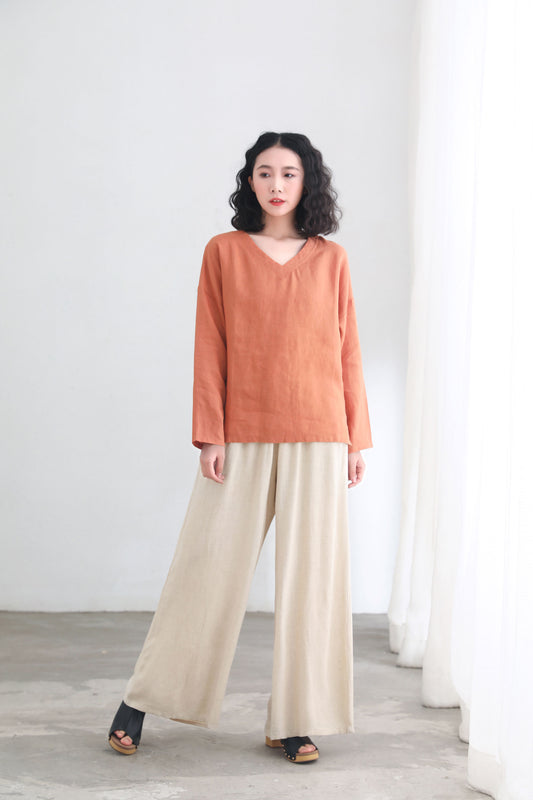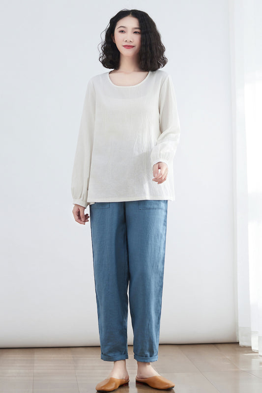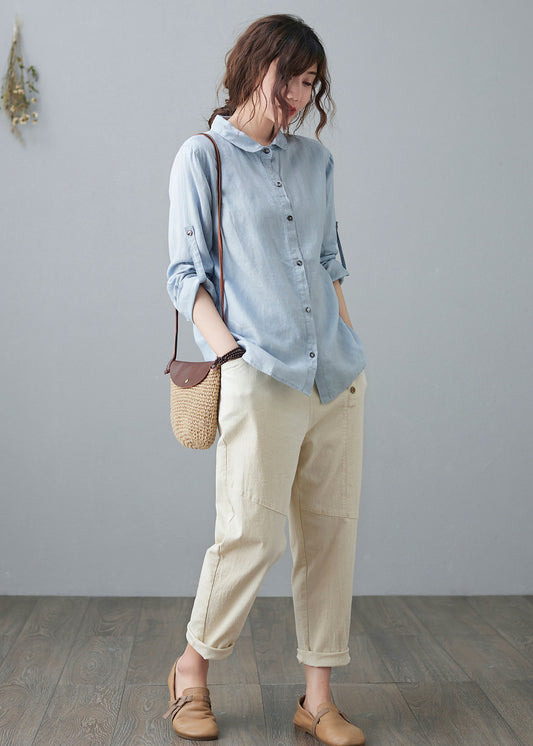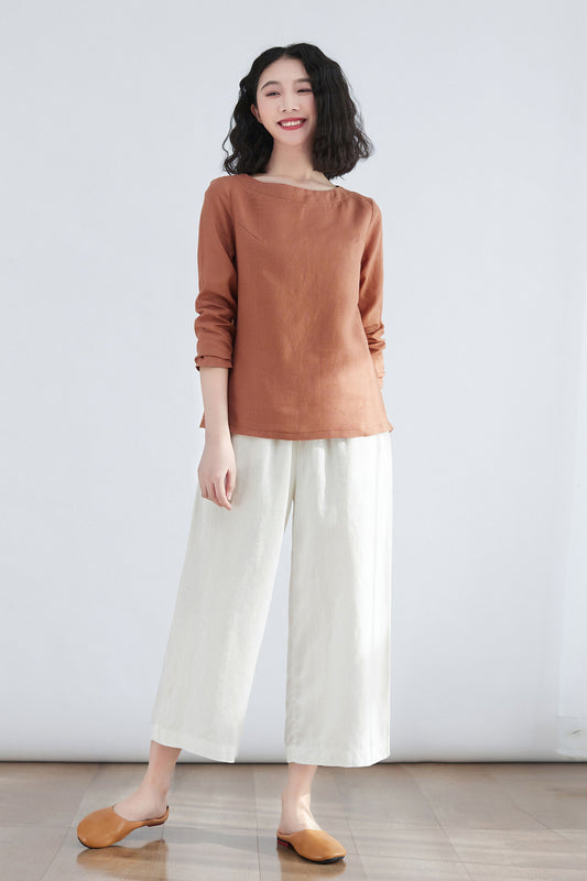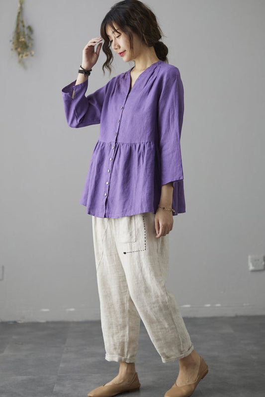 Purple Casual Long Sleeves Linen Shirt Tops C184903