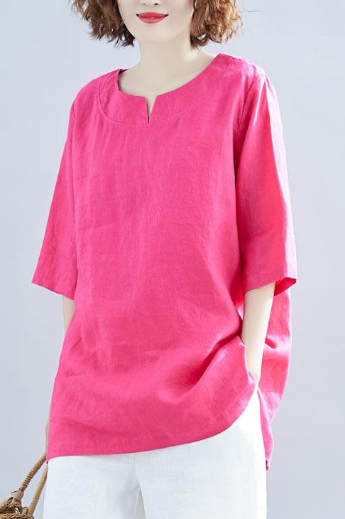 Linen v-neckline top C1461