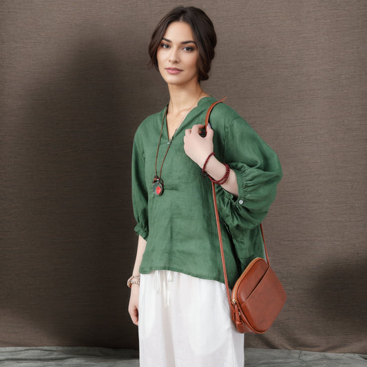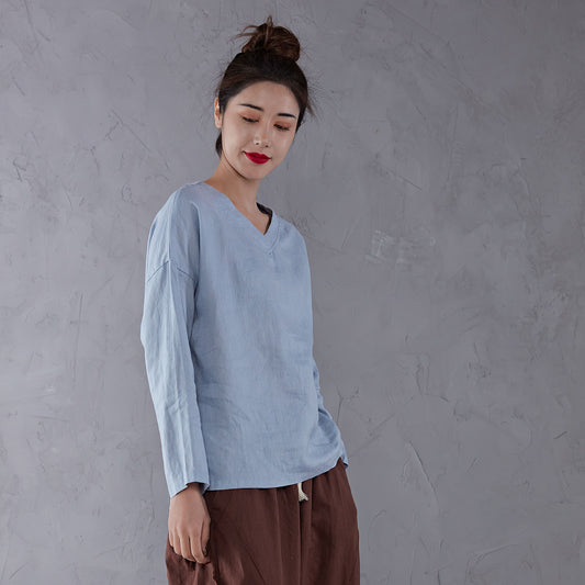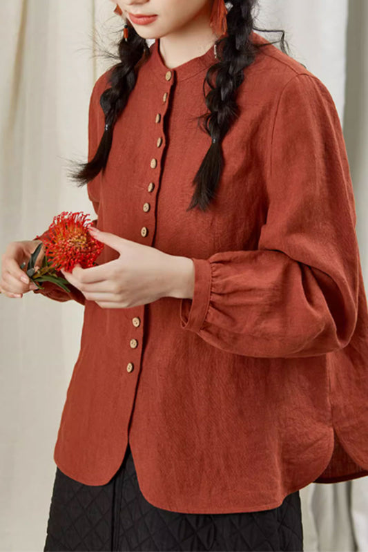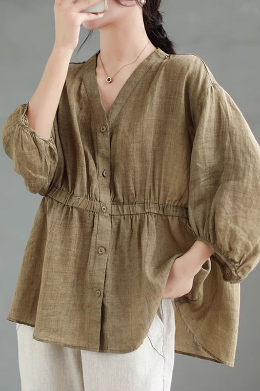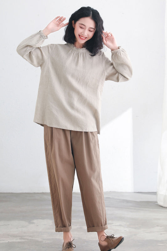 Women Long Sleeve Ruffle Linen Tops C2717#CK2200479