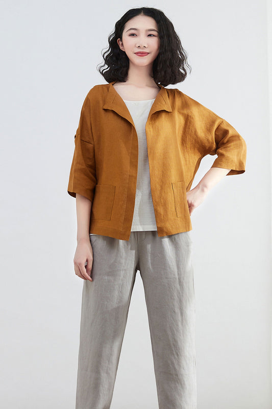 womens loose fit linen Cardigan tops C2684,Size S #CK2200064