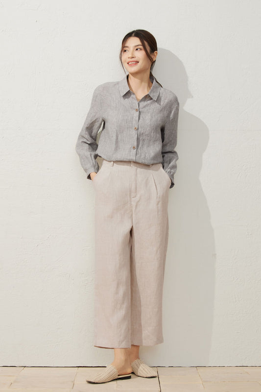 Women's Casual Light Grey Striped Linen Shirt C3937