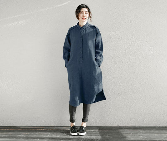 Linen Shirt Dress, Oversized blue Linen dress C1994