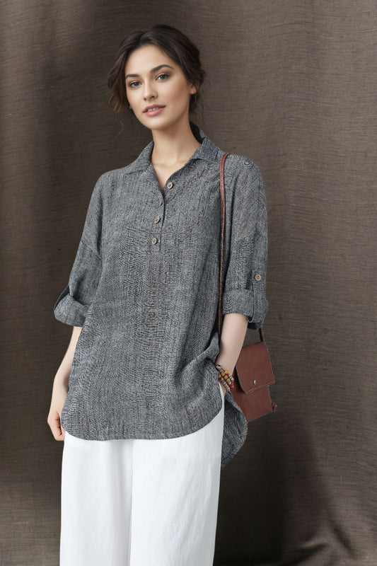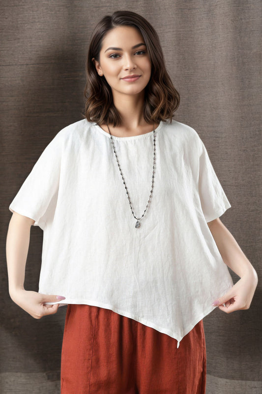 Women's Asymmetrical Linen Tops C4847