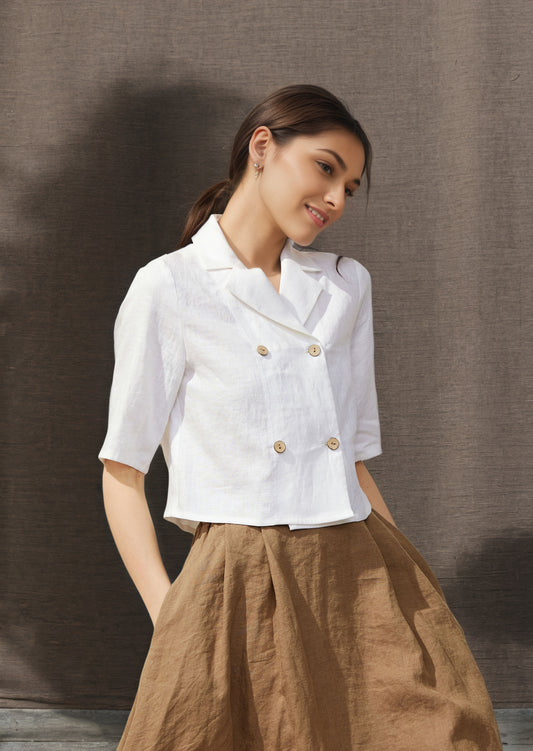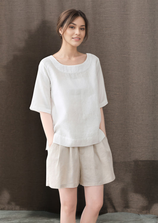 White Short sleeve summer linen blouse C4849