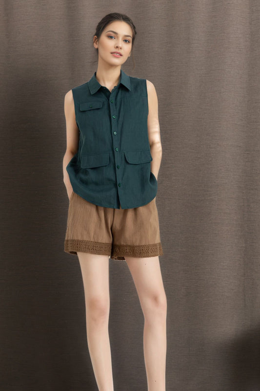 Women's Summer Sleeveless Linen Shirt C4854