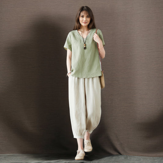 Women's summer loose fitting Linen Tops C4850