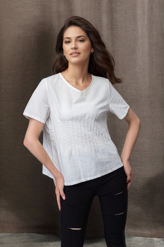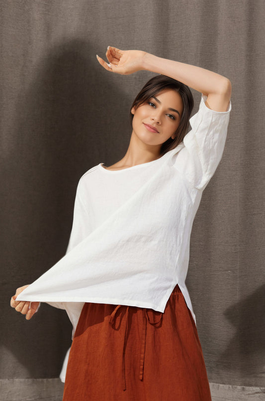 Women's Casual White Linen Tops C4852