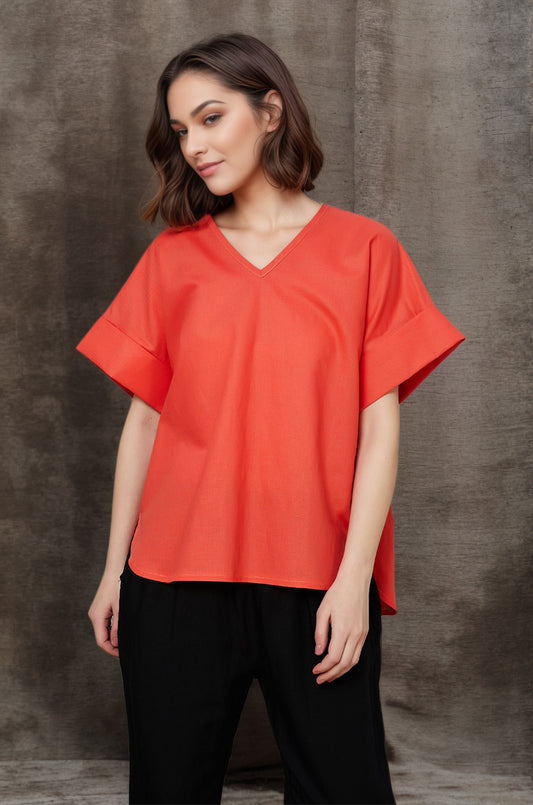 Women's Casual Orange Linen Tops C4845