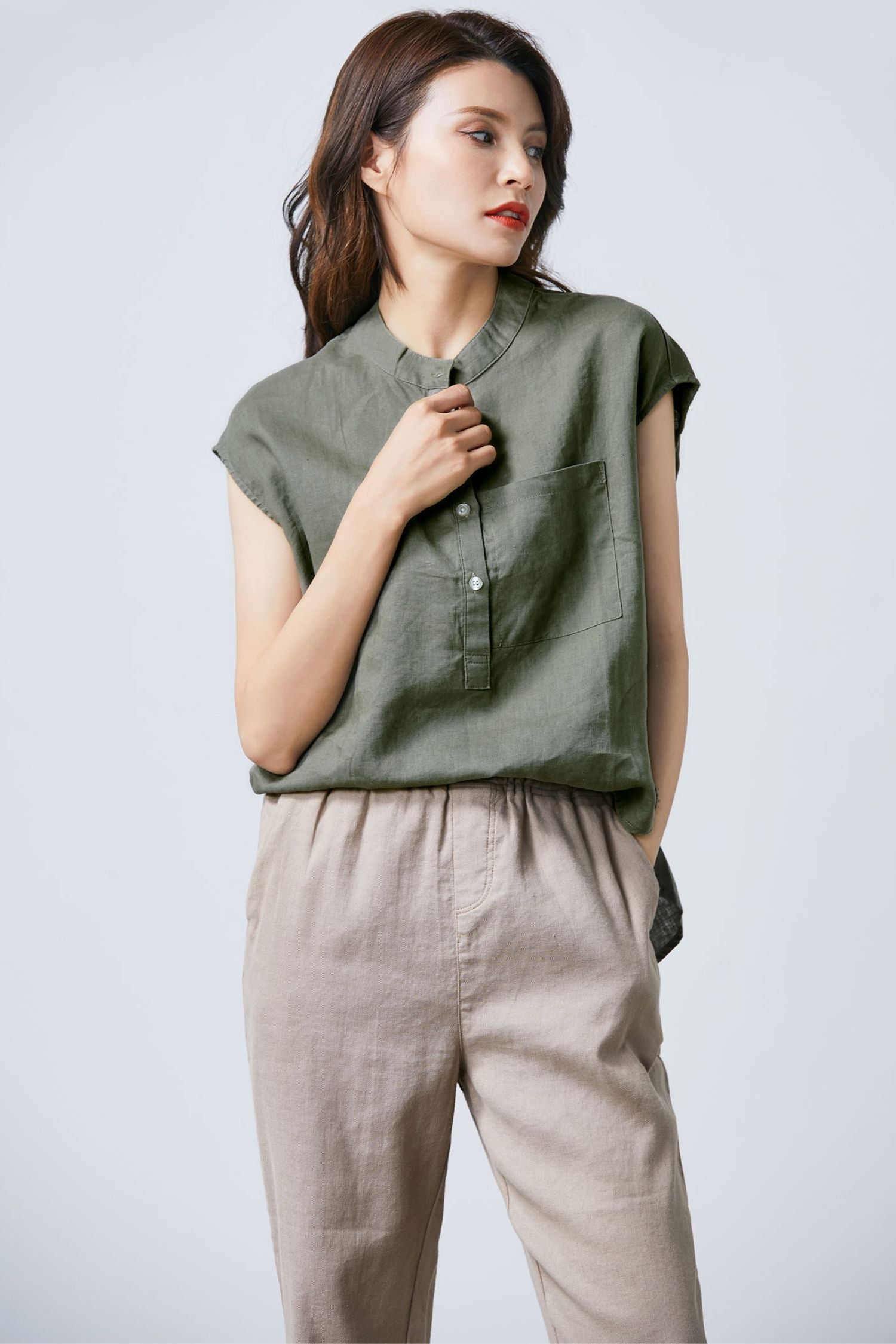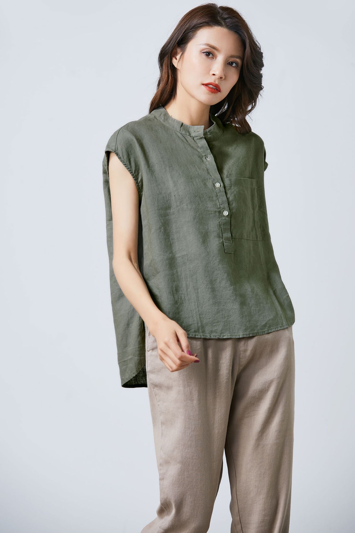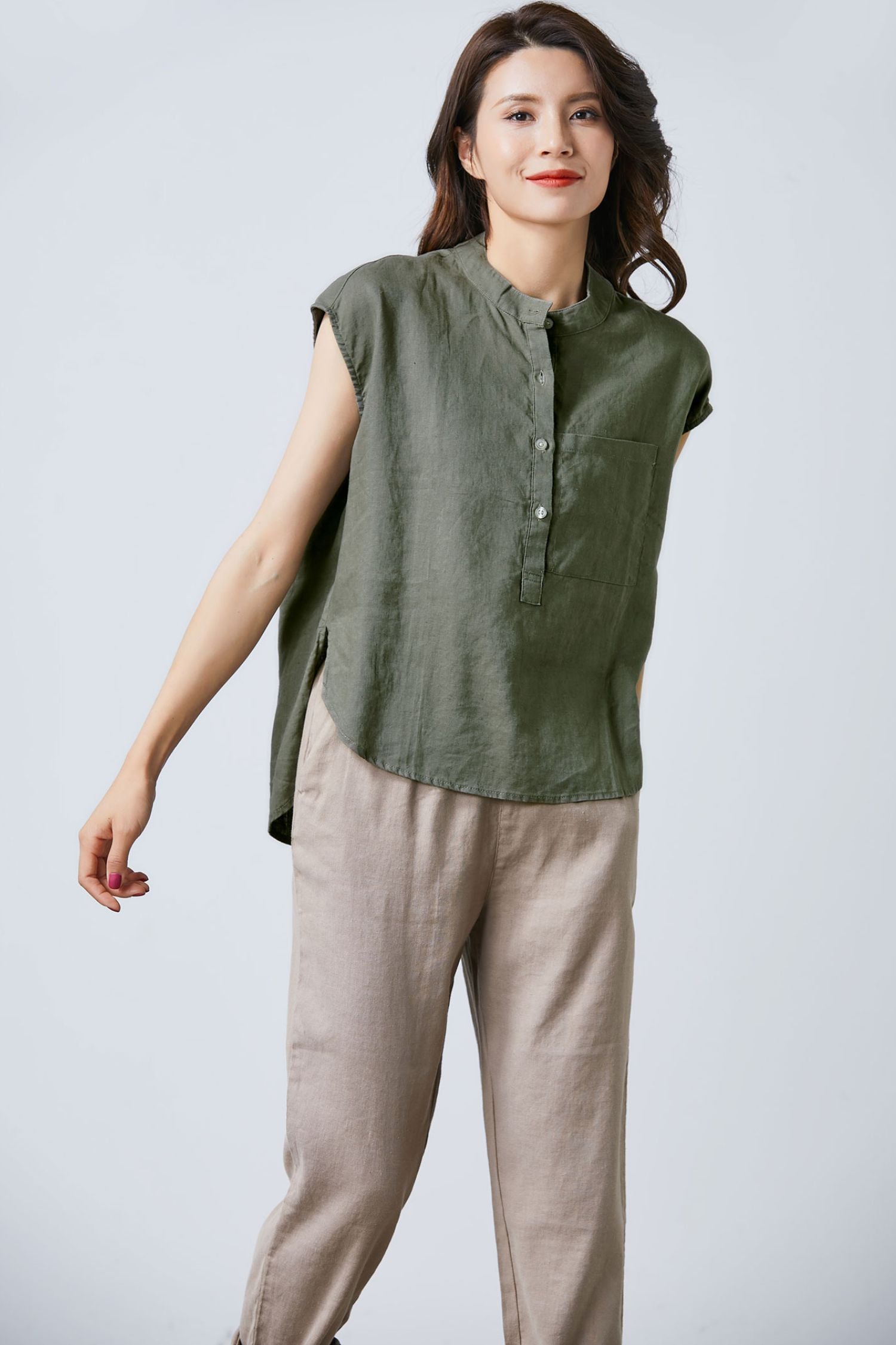 Stay cool and stylish this summer with our Army Green Linen Sleeveless Top! Made from high-quality linen, this top is perfect for any casual or formal occasion. With its flattering sleeveless design and on-trend army green color, you'll turn heads wherever you go. Upgrade your wardrobe now!
