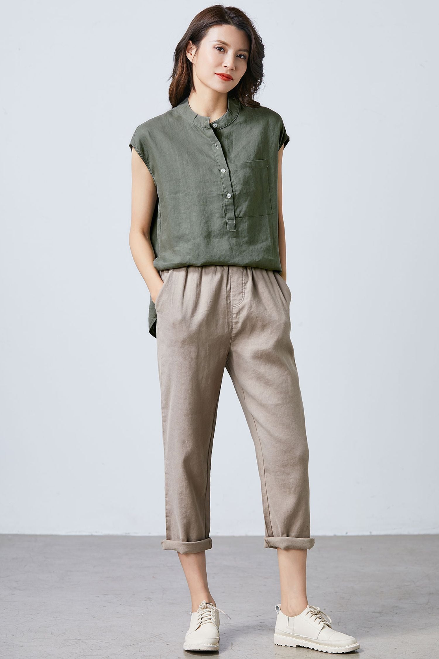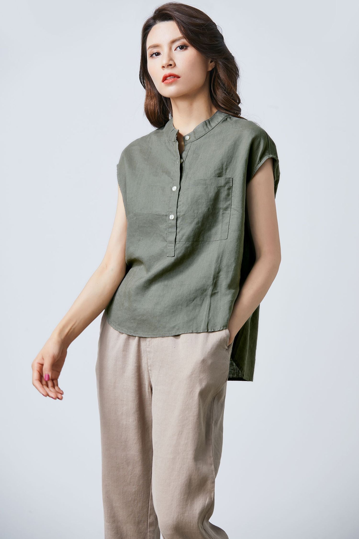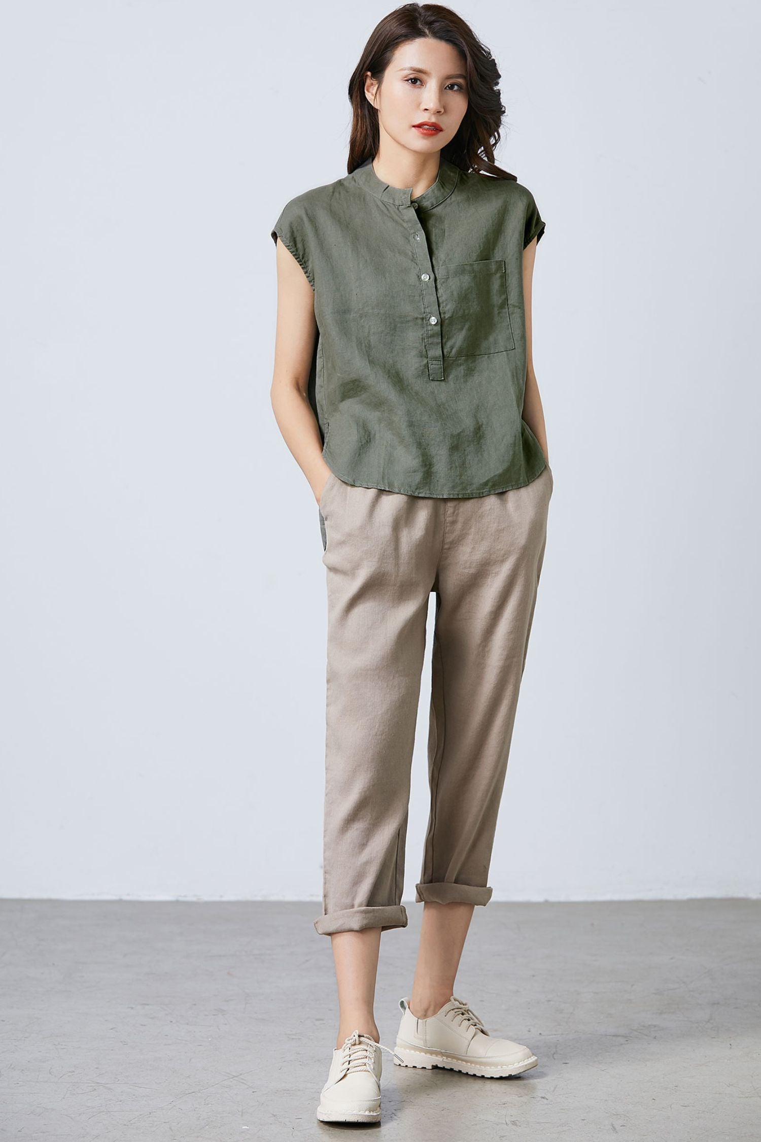 Stay cool and stylish this summer with our Army Green Linen Sleeveless Top! Made from high-quality linen, this top is perfect for any casual or formal occasion. With its flattering sleeveless design and on-trend army green color, you'll turn heads wherever you go. Upgrade your wardrobe now!
