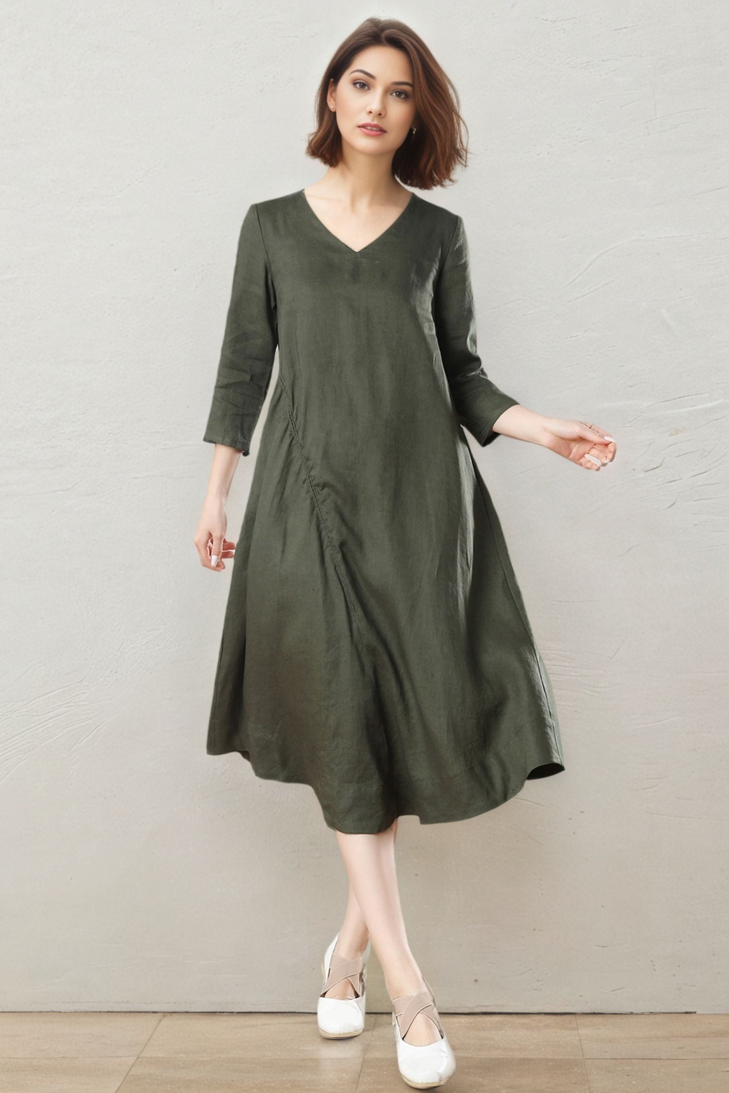 Cool and comfortable for hot summer days, this linen dress is elegant and stylish. It is a wonderful wardrobe staple that's a timeless classic you'll wear again and again.Pure natural linen materials, comfortable, breathable, refreshing and soft fabric.