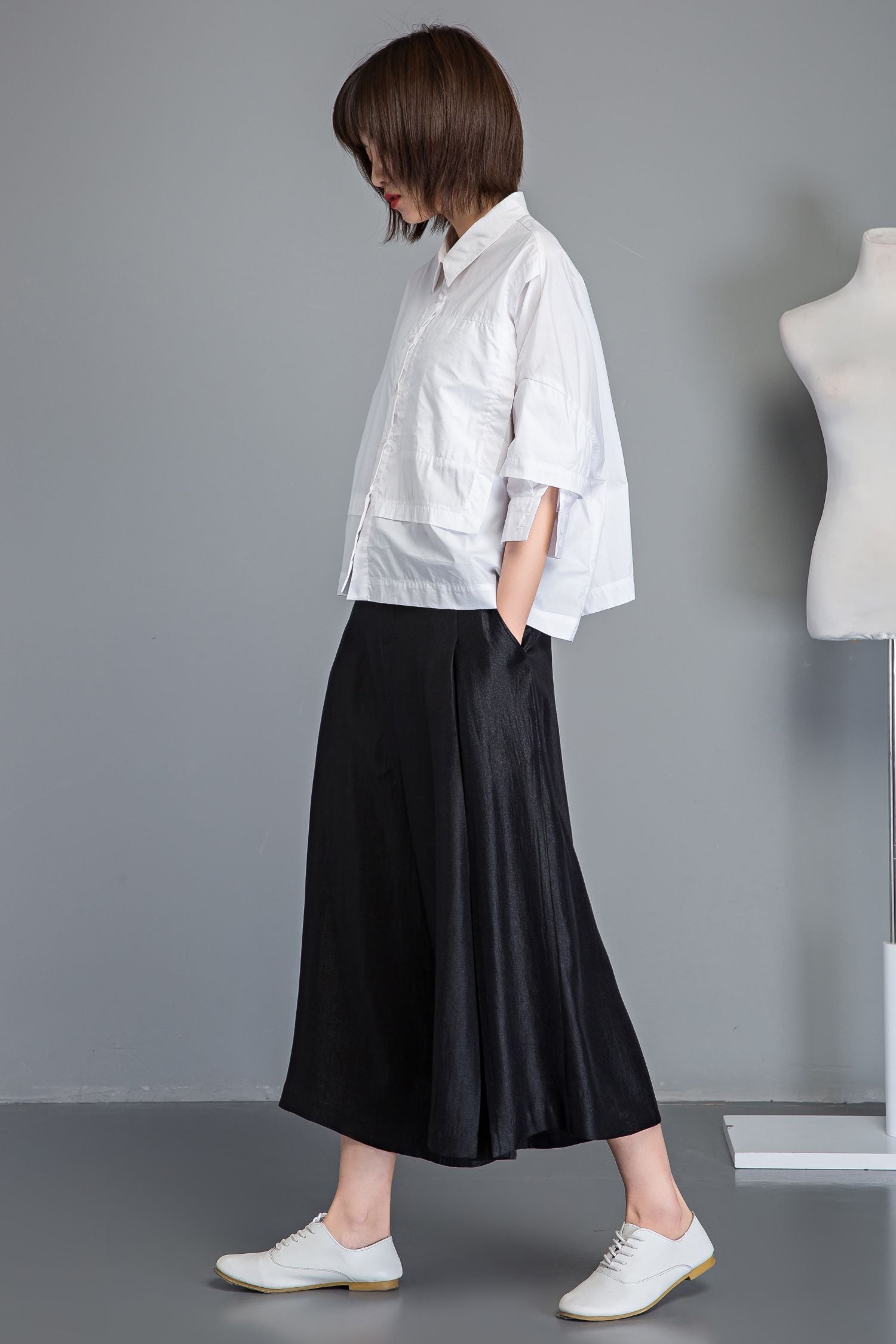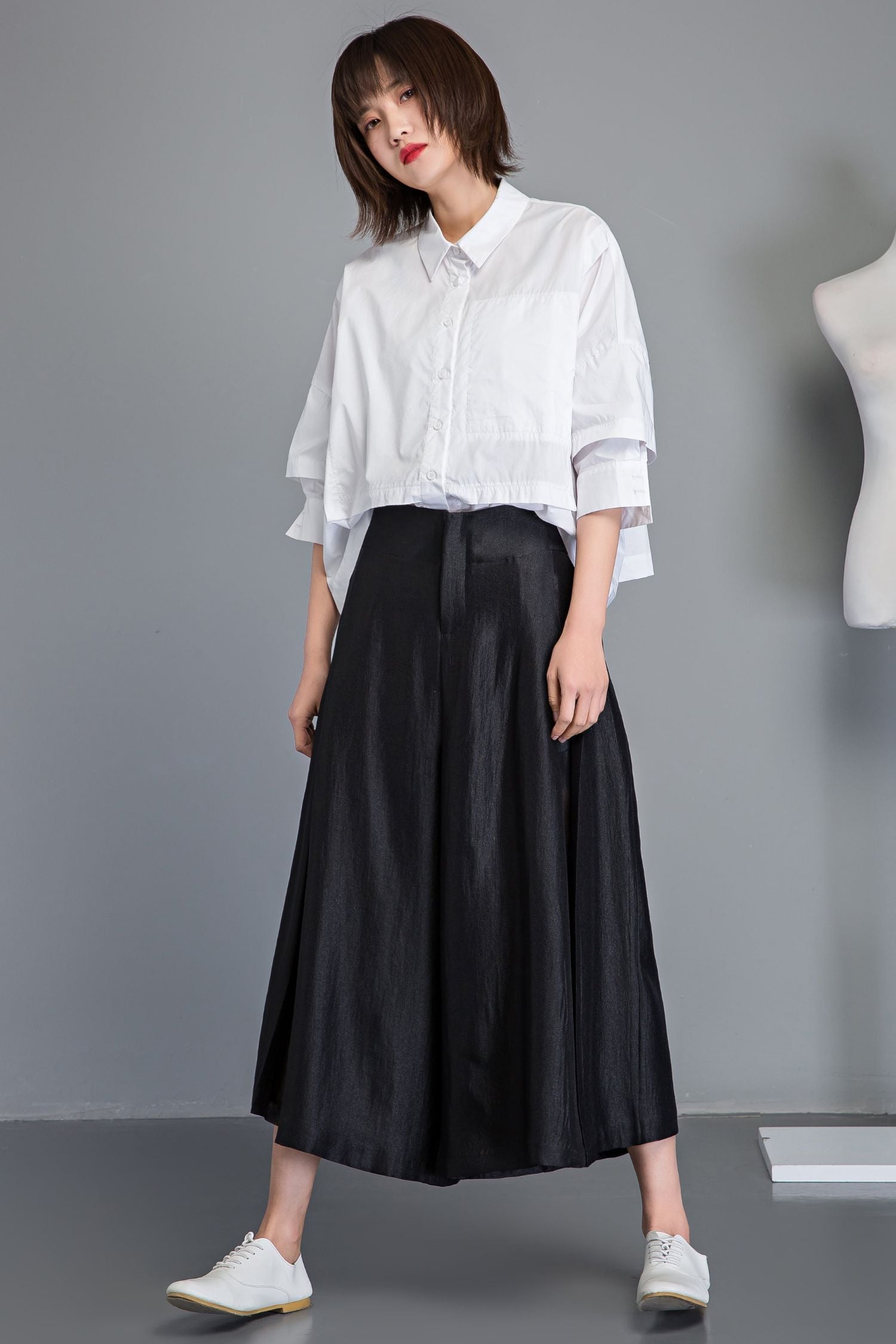 Effortlessly chic and comfortable, our black palazzo women's wide leg pants are a must-have addition to your wardrobe. The airy and flowy design provides a flattering silhouette and the classic black color makes it versatile for any occasion. Elevate your style with these stylish and timeless pants.