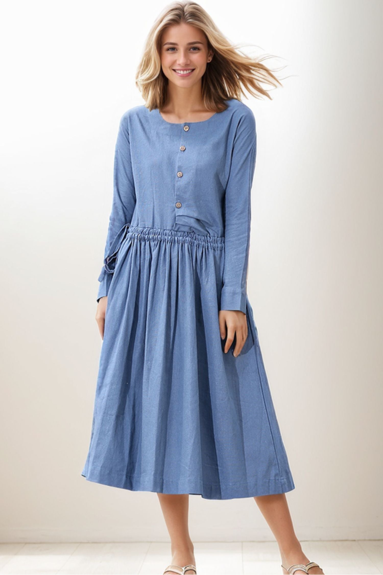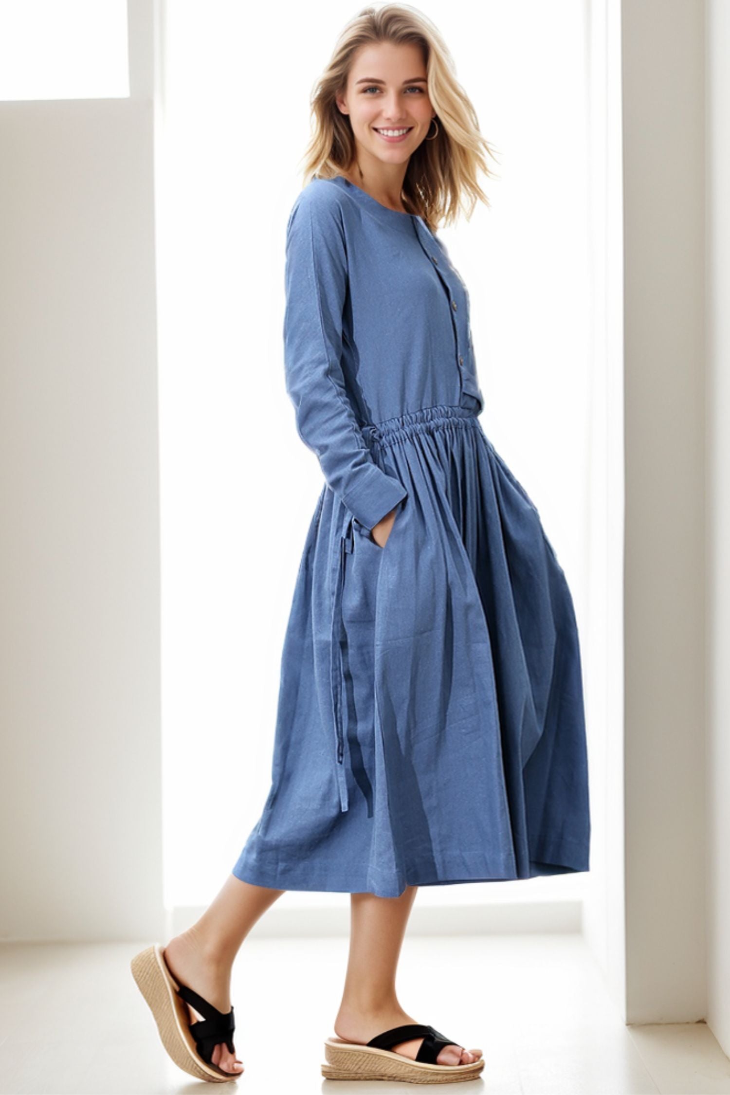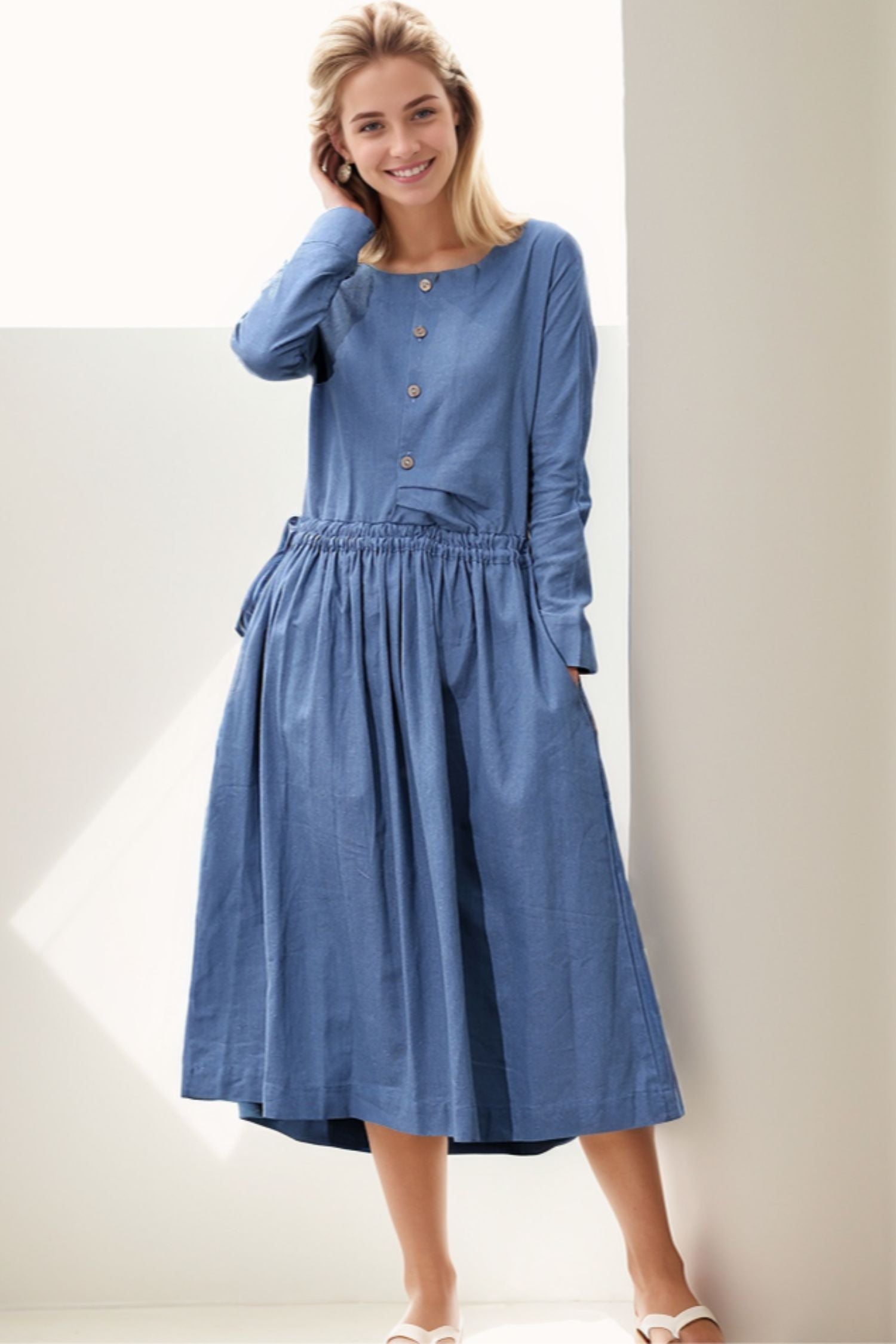 Get ready to turn heads in our Blue Waist Drawstring Loose Dress! This stunning dress features a flattering drawstring waist, highlighting your curves while providing a comfortable, loose fit. The beautiful blue color adds a pop of color to any outfit, making it the perfect dress for any occasion. Look and feel amazing in this must-have piece!