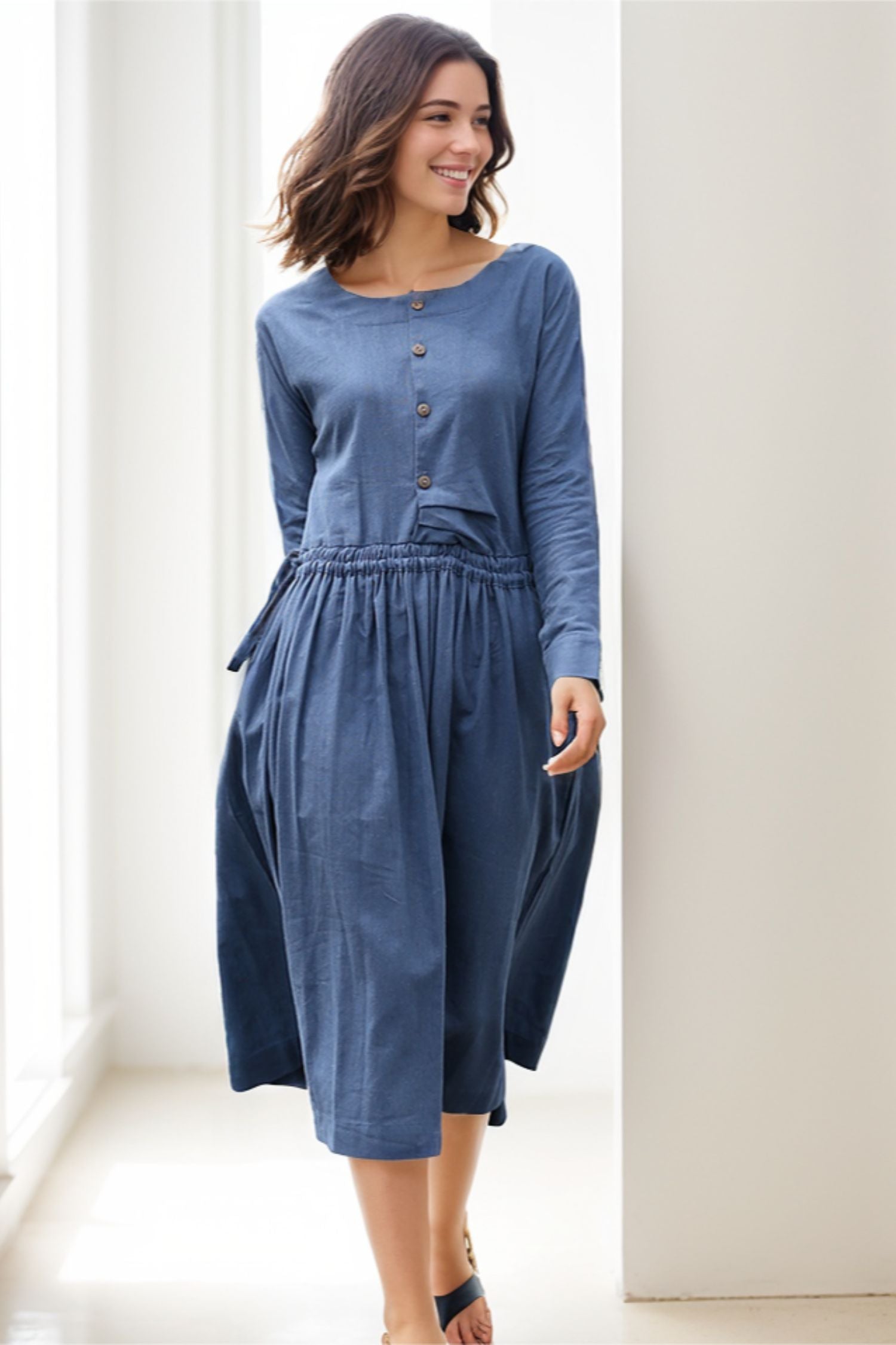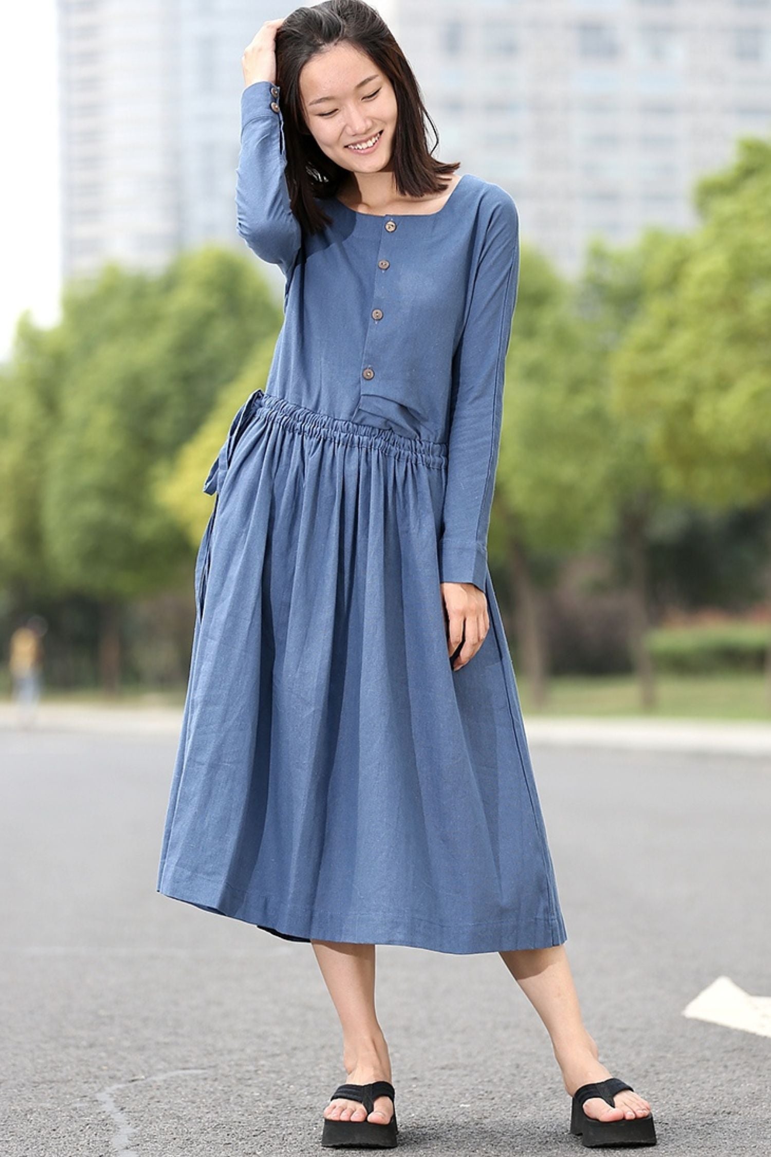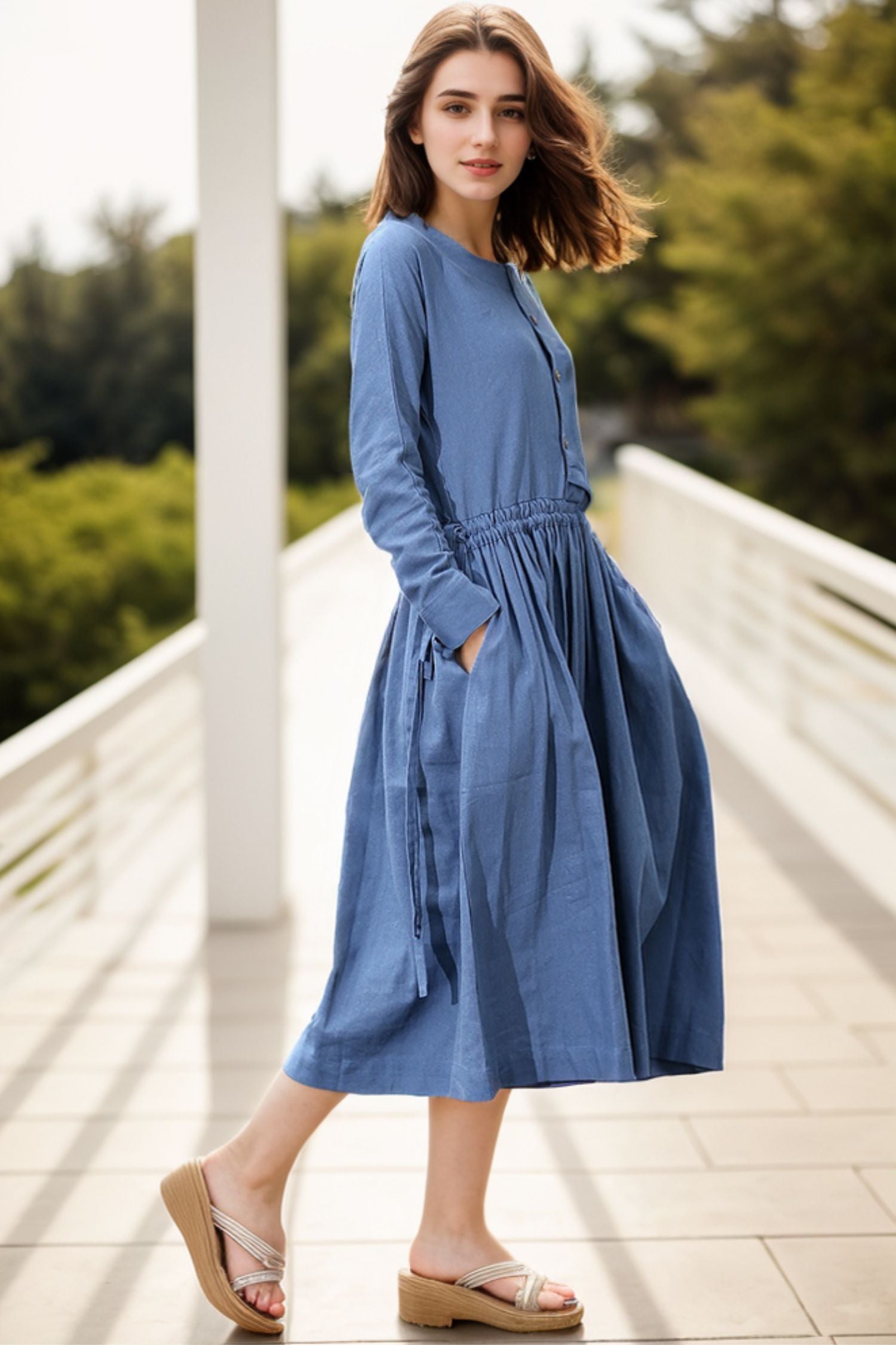 Get ready to turn heads in our Blue Waist Drawstring Loose Dress! This stunning dress features a flattering drawstring waist, highlighting your curves while providing a comfortable, loose fit. The beautiful blue color adds a pop of color to any outfit, making it the perfect dress for any occasion. Look and feel amazing in this must-have piece!