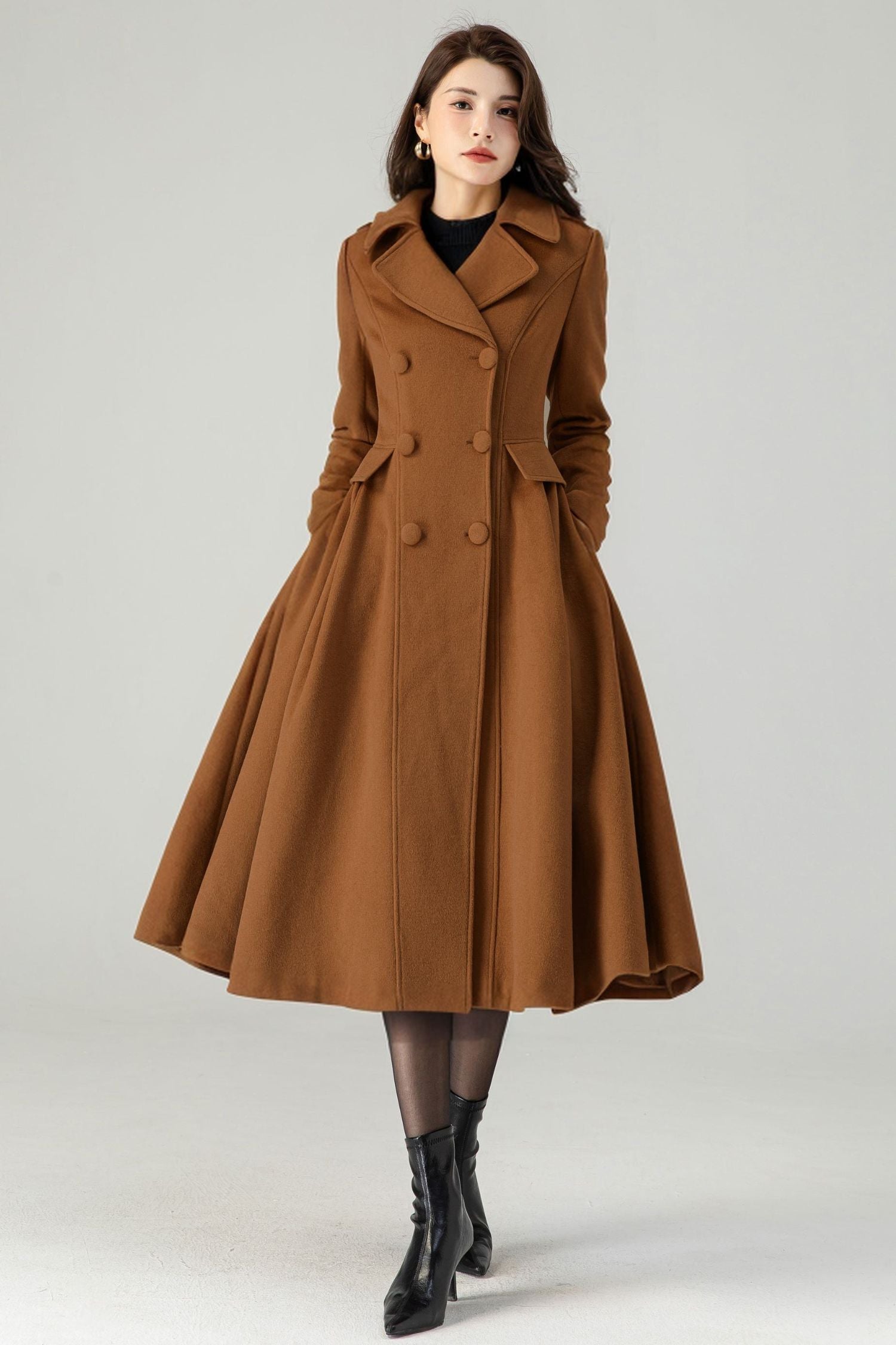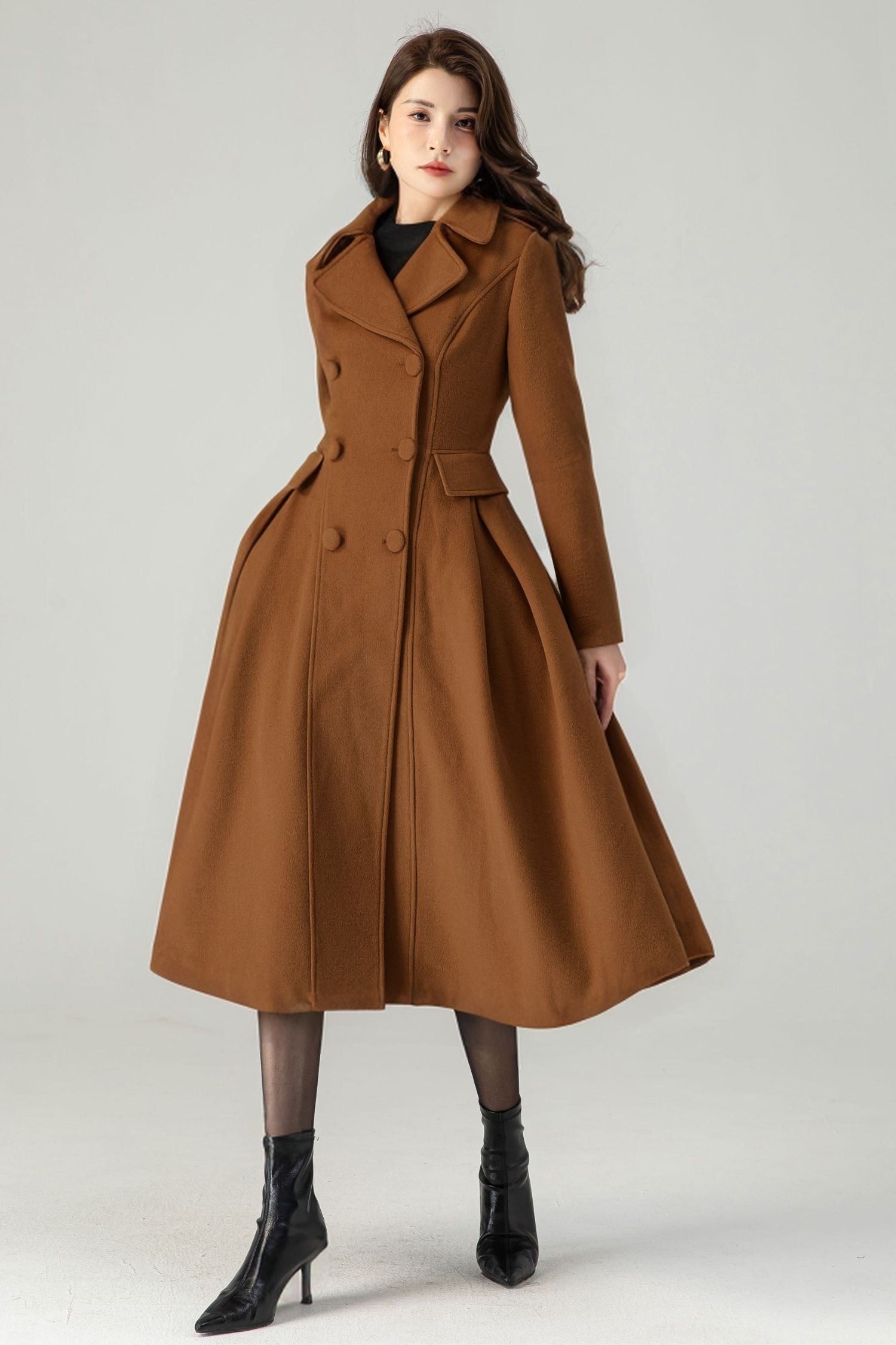 Indulge in luxurious warmth and style with our Brown Double Breasted Winter Wool Coat for Women. Crafted with premium wool, this coat boasts a sophisticated double-breasted design that exudes elegance. Keep snug and stylish during the colder months with this timeless and exclusive piece.