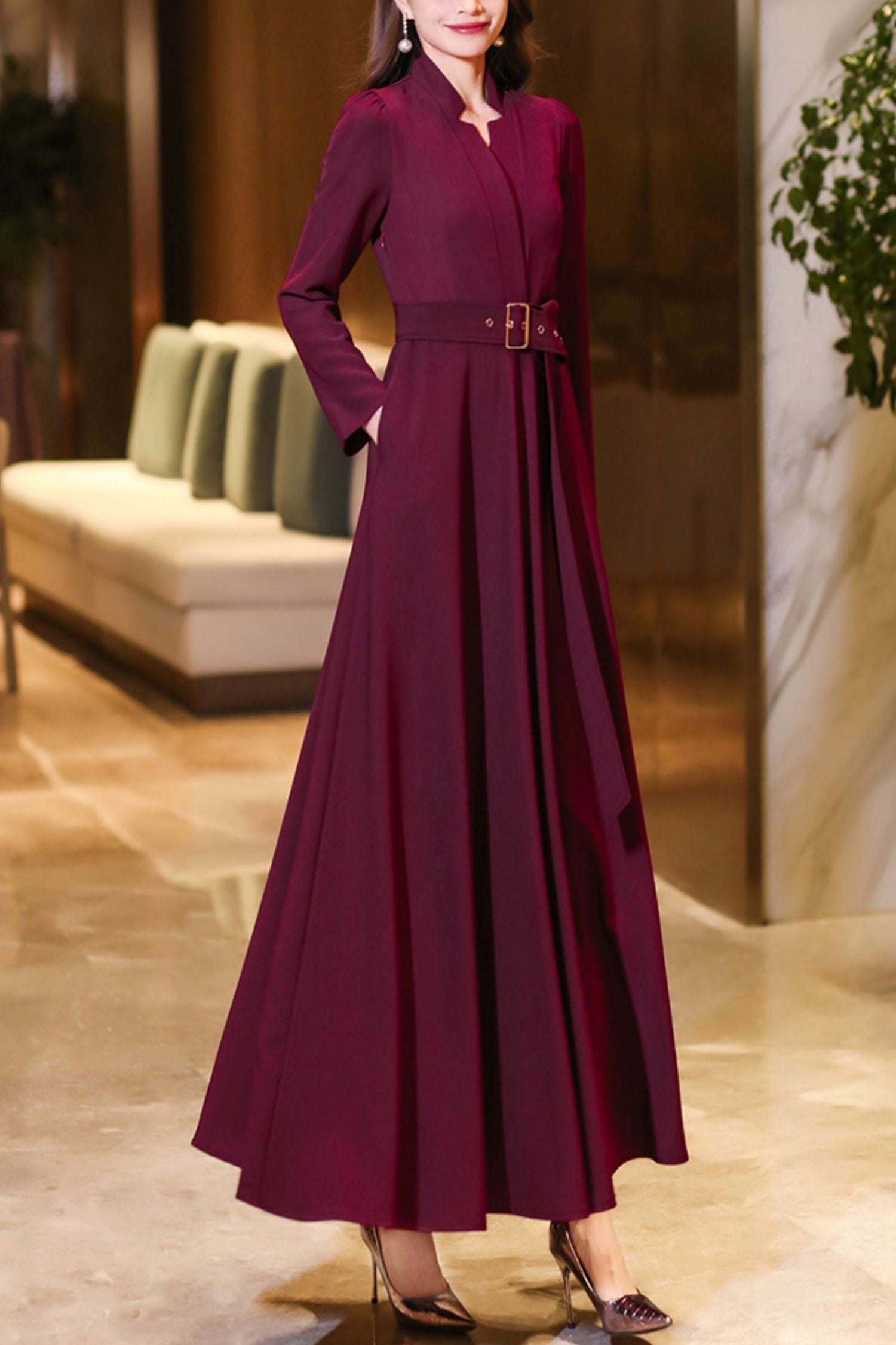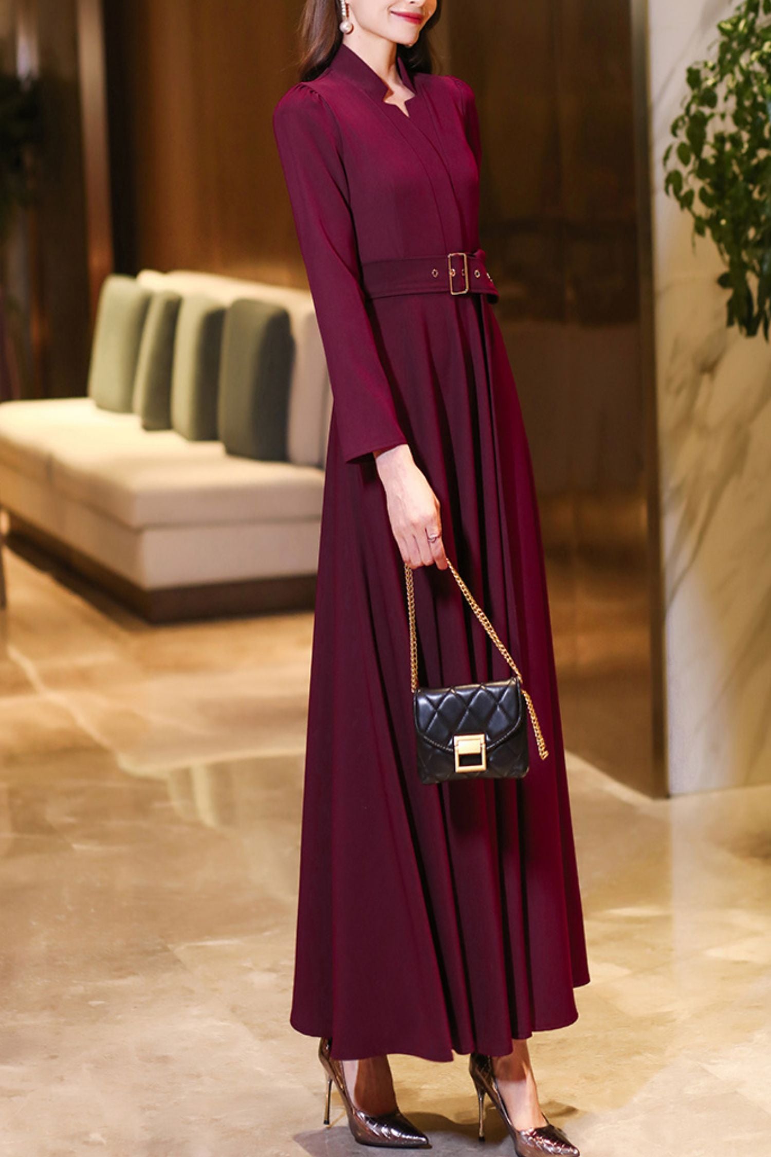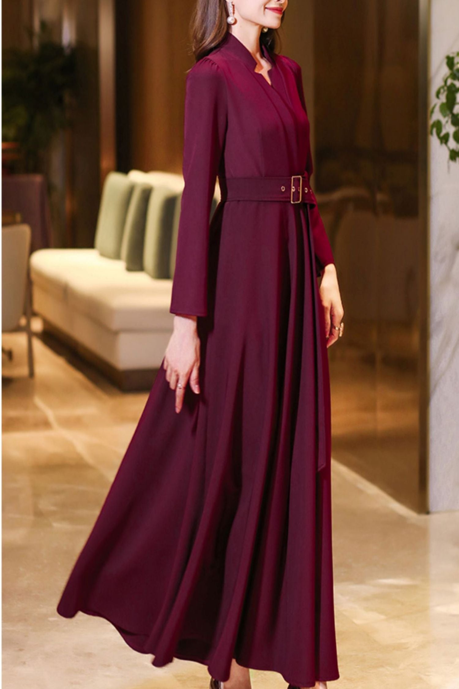 Indulge in luxury with our burgundy v-neck dress. This sophisticated and exclusive piece boasts long sleeves and a flattering v-neckline, perfect for any occasion. Elevate your wardrobe with this stylish and elegant dress.