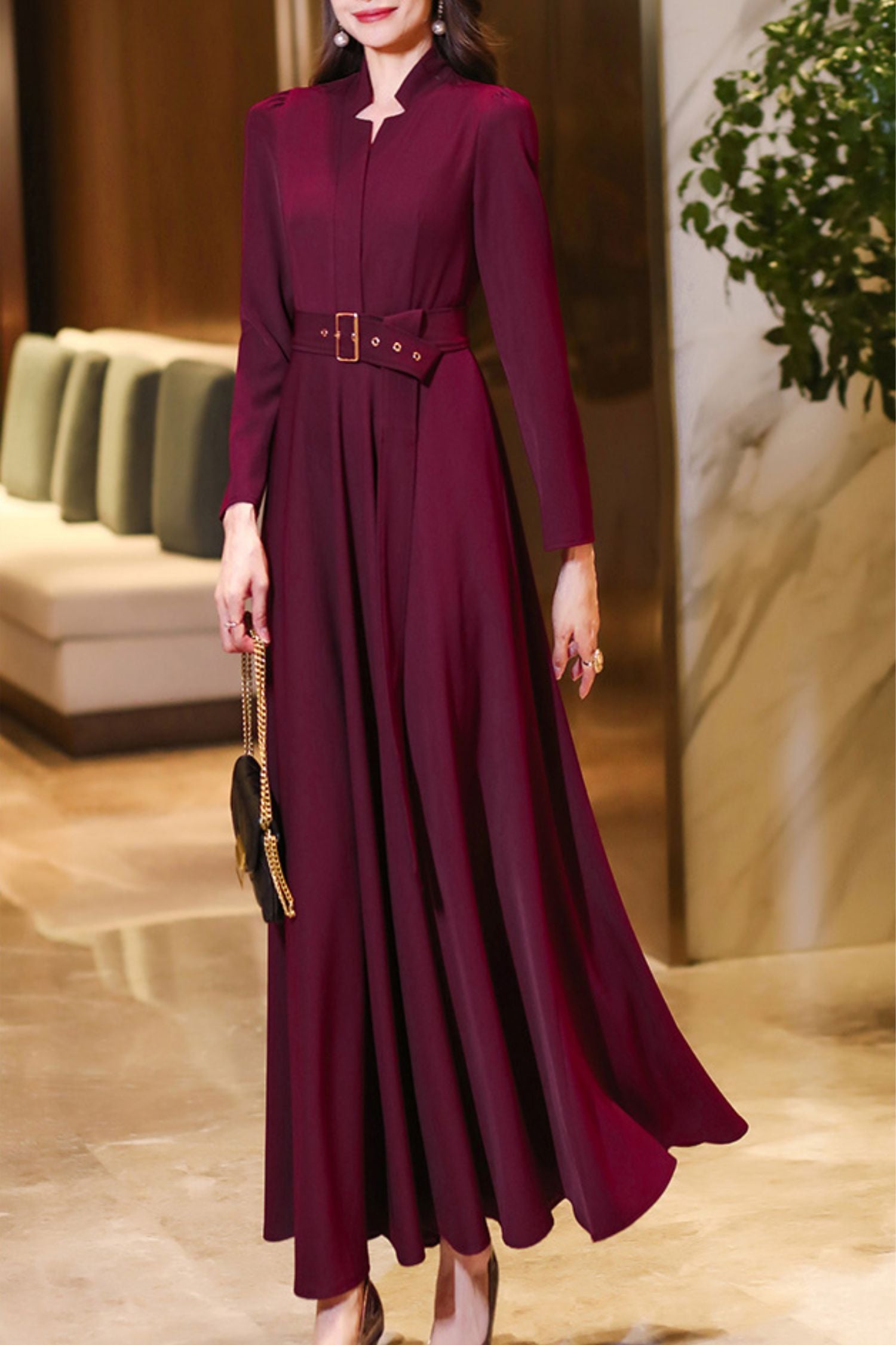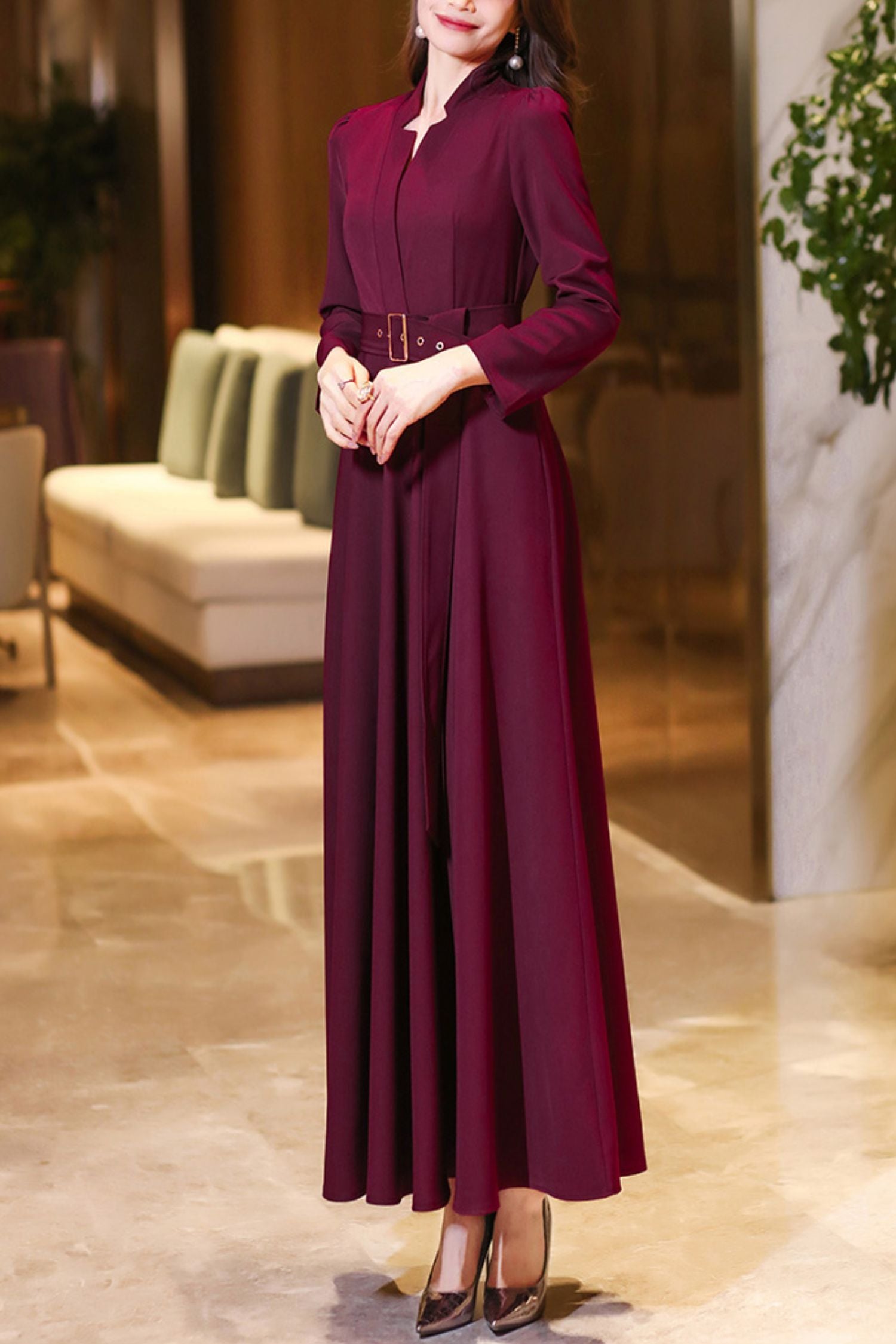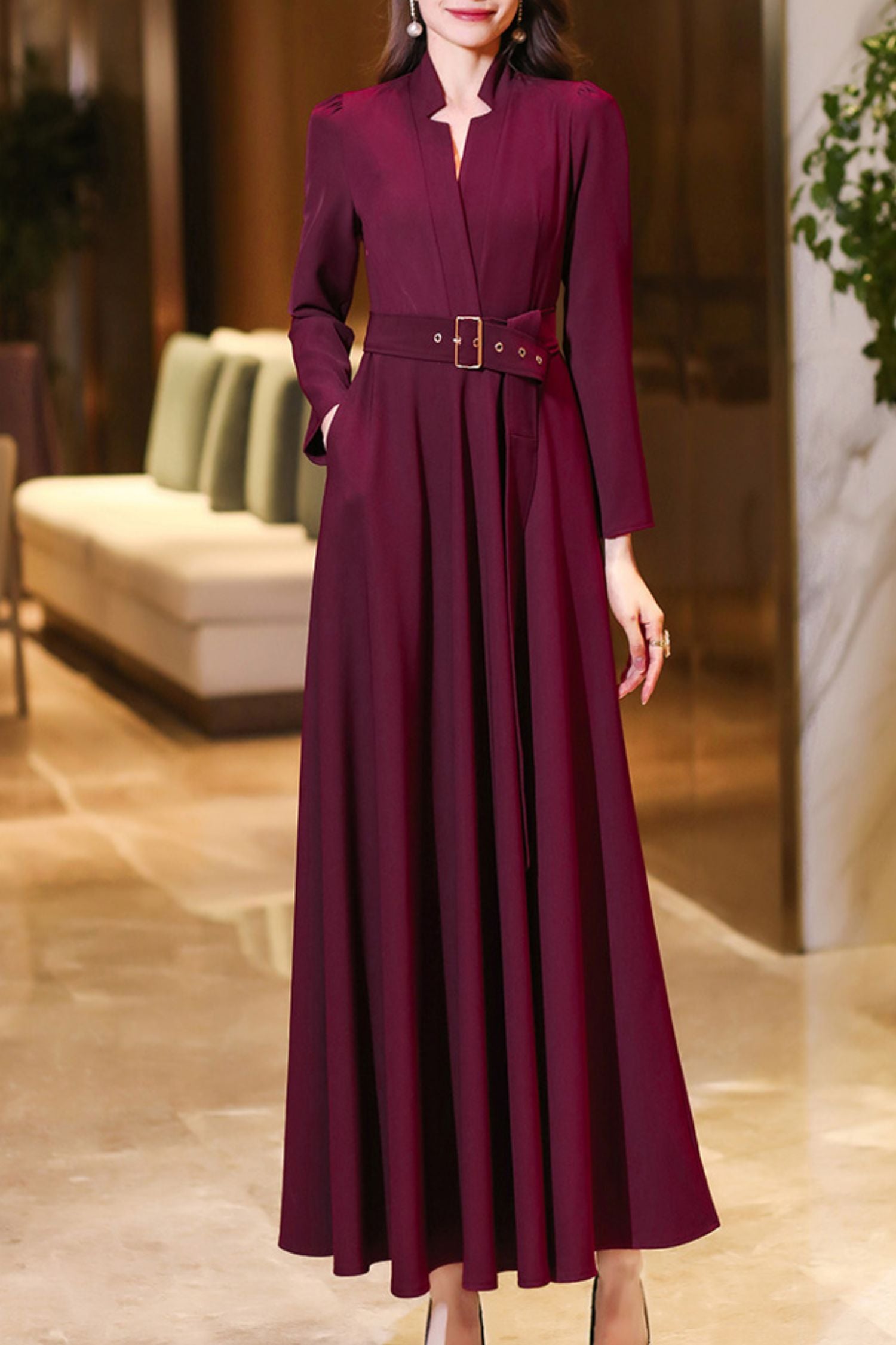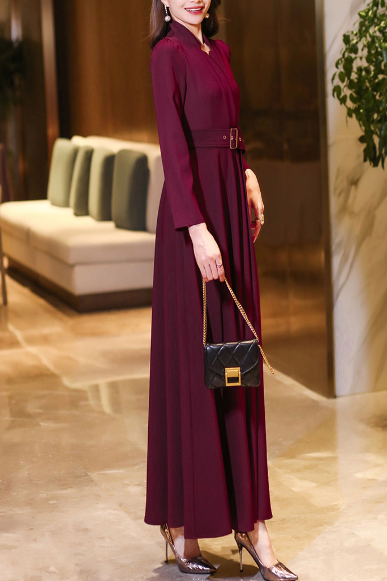 Indulge in luxury with our burgundy v-neck dress. This sophisticated and exclusive piece boasts long sleeves and a flattering v-neckline, perfect for any occasion. Elevate your wardrobe with this stylish and elegant dress.