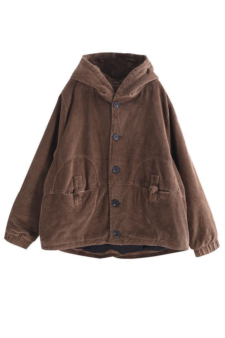 Coffee Hooded Winter Warm Corduroy Coats C2983