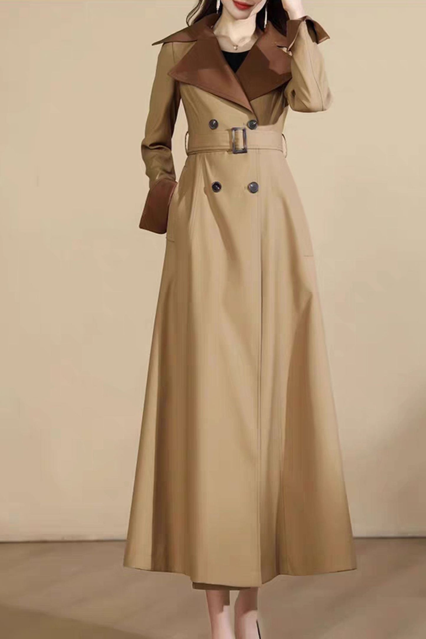 This sophisticated Double Breasted Coat is the perfect addition to your spring wardrobe. Made from high-quality materials, this coat effortlessly blends fashion and functionality with its spring coat dress design and long trench coat silhouette. Elevate your style and make a statement with this luxurious piece.