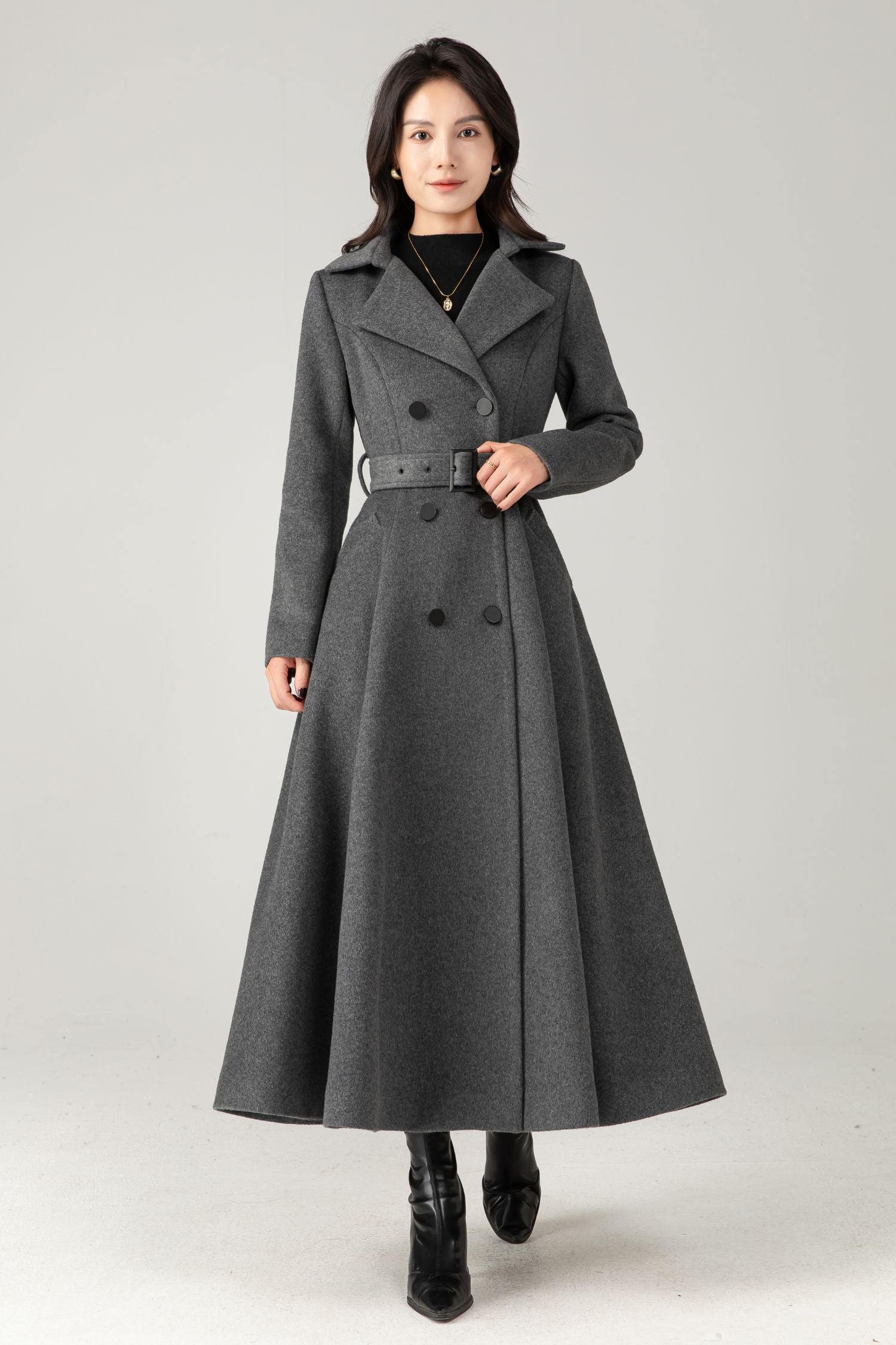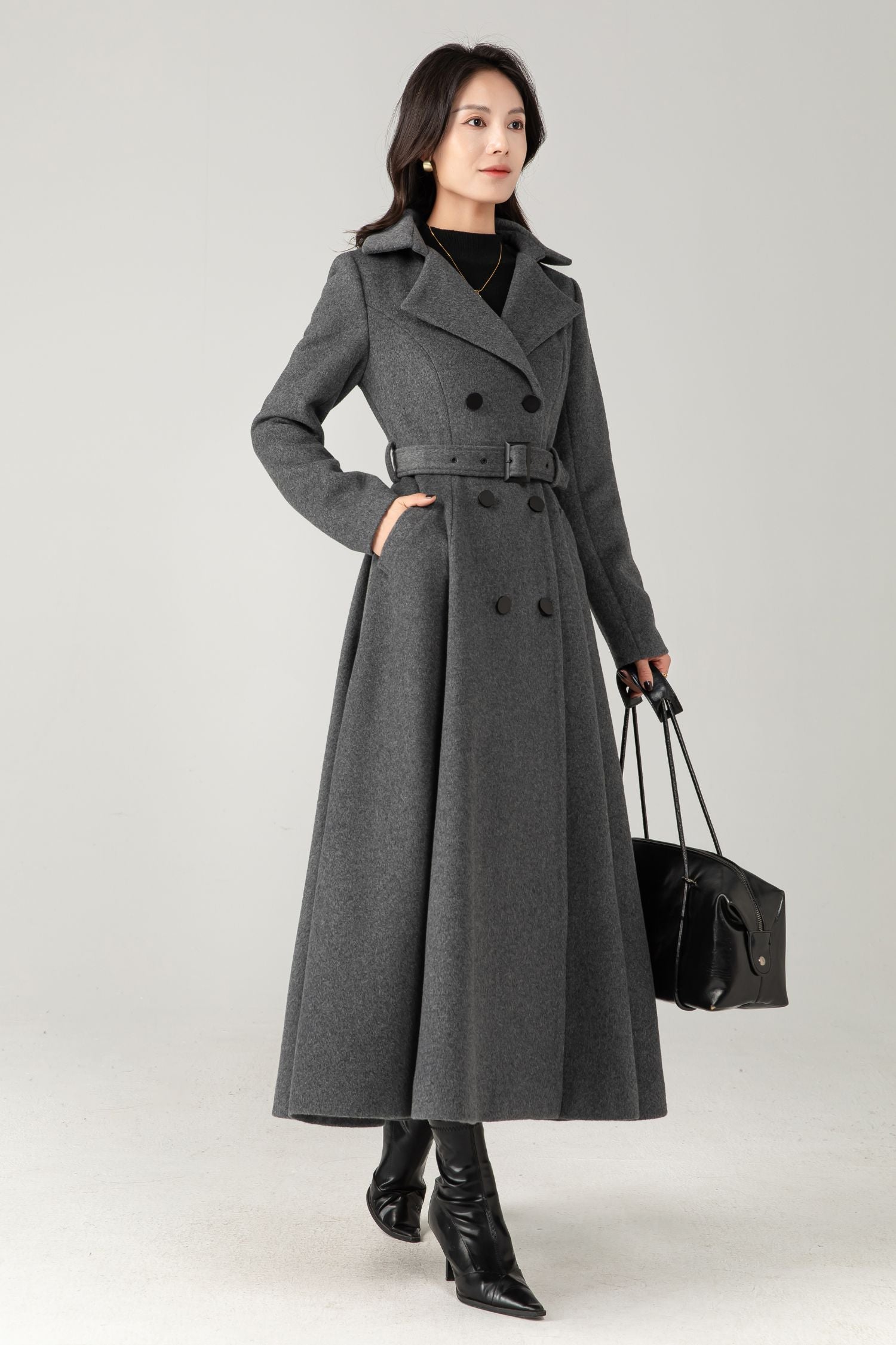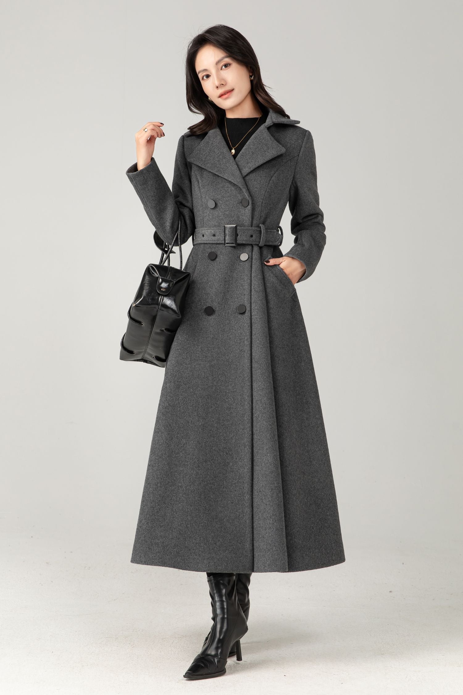 Elevate your winter wardrobe with this sophisticated double-breasted wool coat in timeless gray. Crafted from premium wool, it delivers exceptional warmth without compromising on style. The classic double-breasted silhouette and extended length create an elegant, flattering profile perfect for both professional settings and casual outings. Quality construction ensures durability through countless seasons, while the refined design pairs effortlessly with any outfit. Stay cozy and chic when temperatures drop—this is the investment piece every winter closet needs.