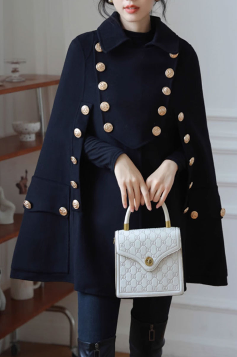 Double breasted military wool cape women C3656