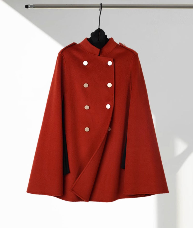 Indulge in luxury with our Double Breasted Winter Wool Cape for women. Made from high-quality wool, this cape exudes elegance and sophistication. Its double-breasted design adds a touch of class, making it the perfect addition to your winter wardrobe. Stay warm and stylish in our premium cape.