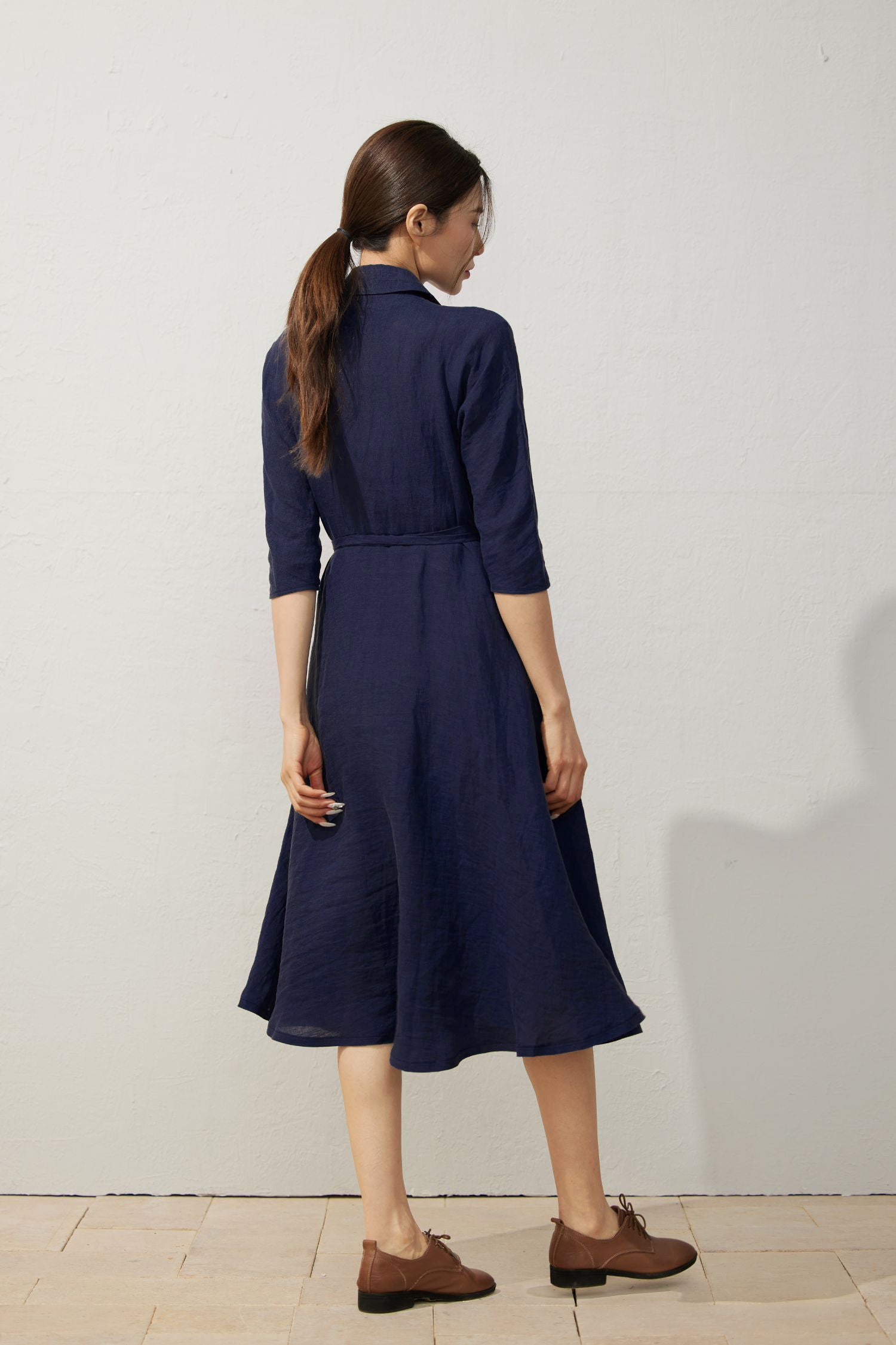 Elegant Navy Blue Linen Wrap Dress C5402