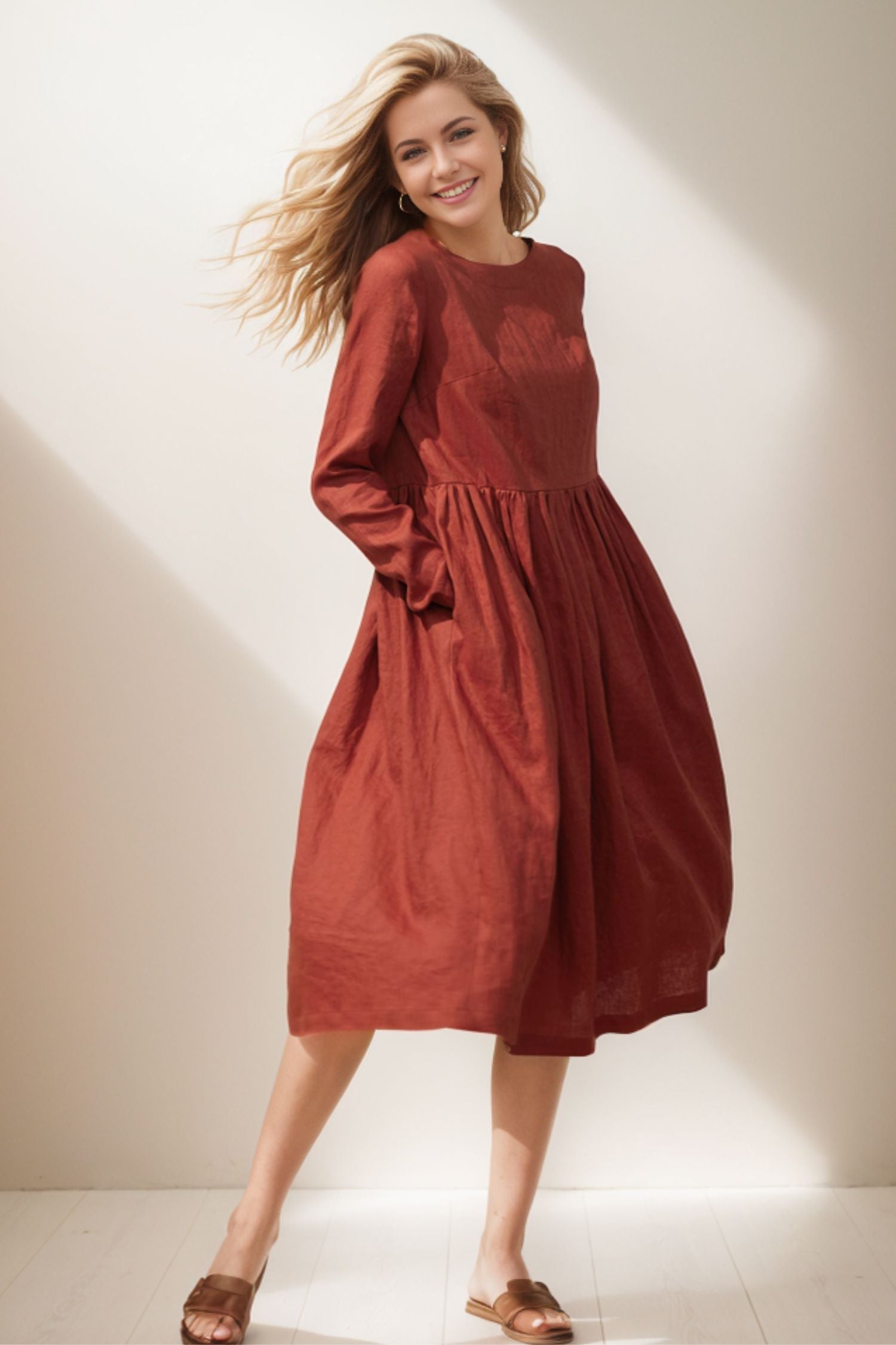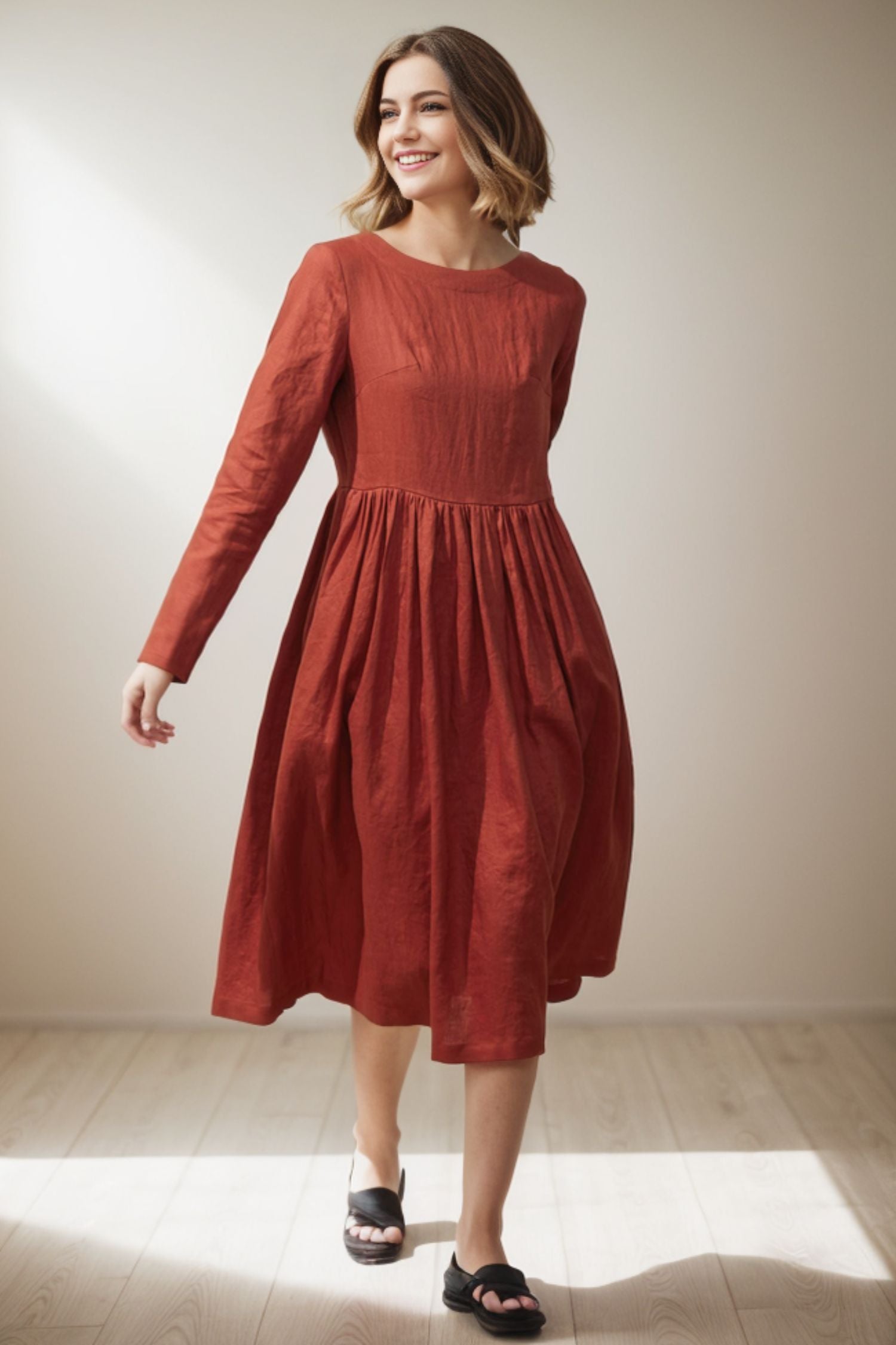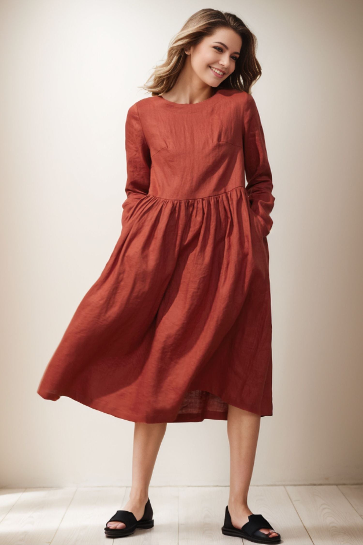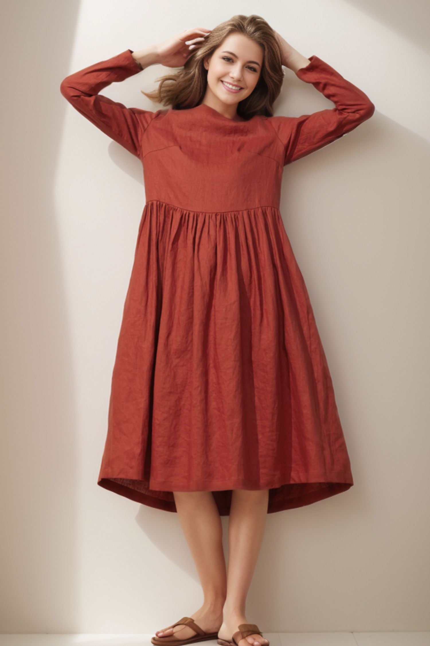 Indulge in luxury with our Elegant Orange Linen Dress C4136. Crafted from high-quality linen, this dress exudes sophistication and exclusivity. The vibrant orange hue adds a pop of color to any occasion, while the elegant design and material provide both comfort and style. Elevate your wardrobe with this must-have piece.