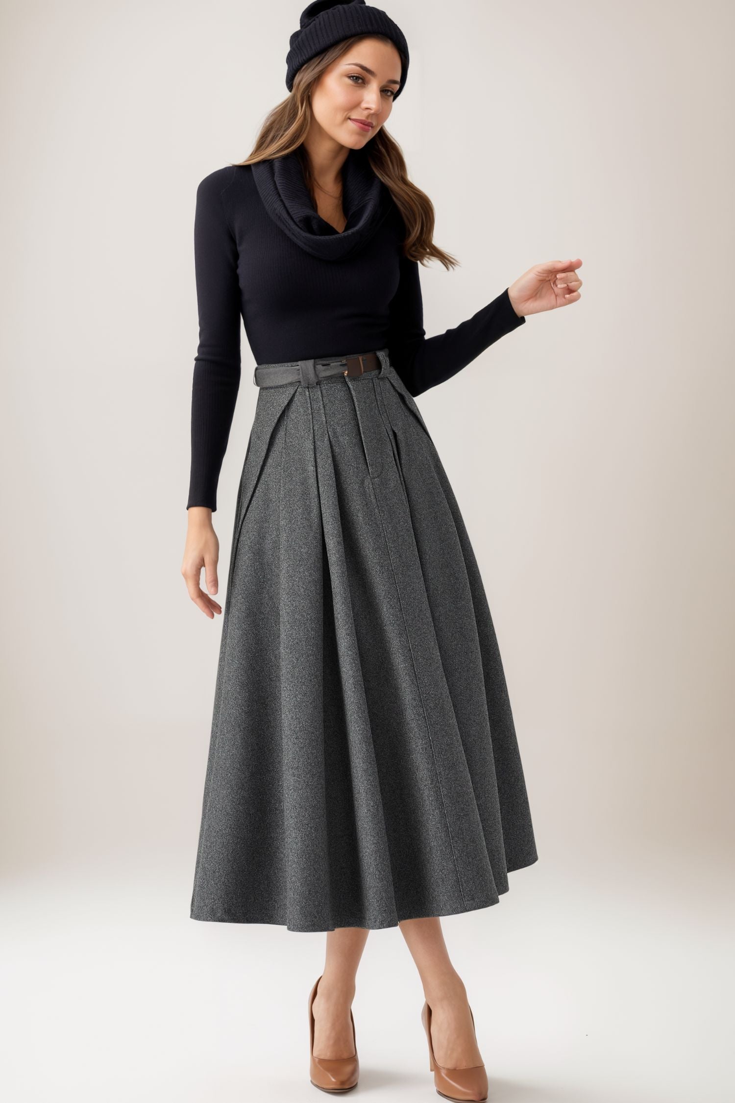 Introducing our Gray Wool Midi Skirt Women, a sophisticated addition to your wardrobe. Made from premium wool, this midi skirt exudes elegance and luxury. Its neutral gray color pairs perfectly with any top, making it a versatile and timeless piece. Elevate your style with this exclusive skirt.