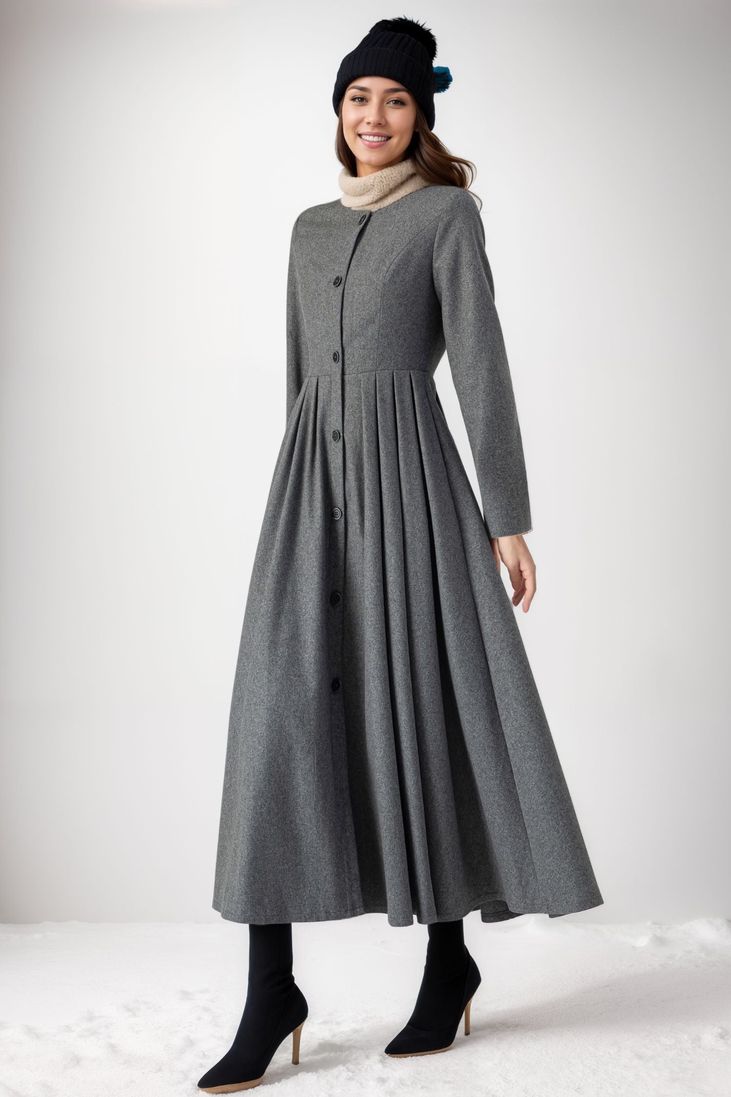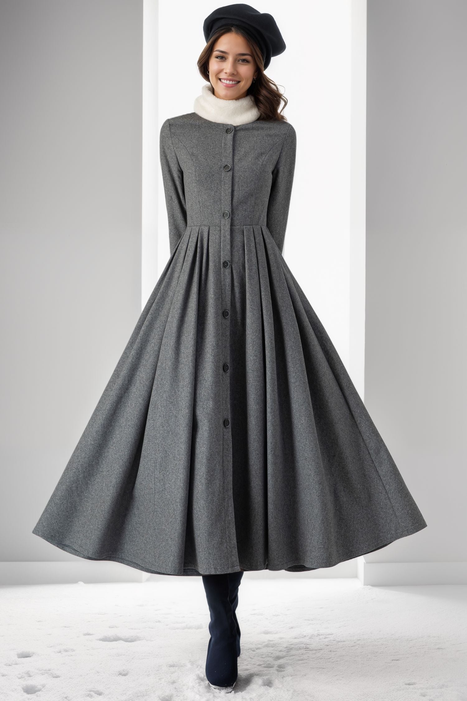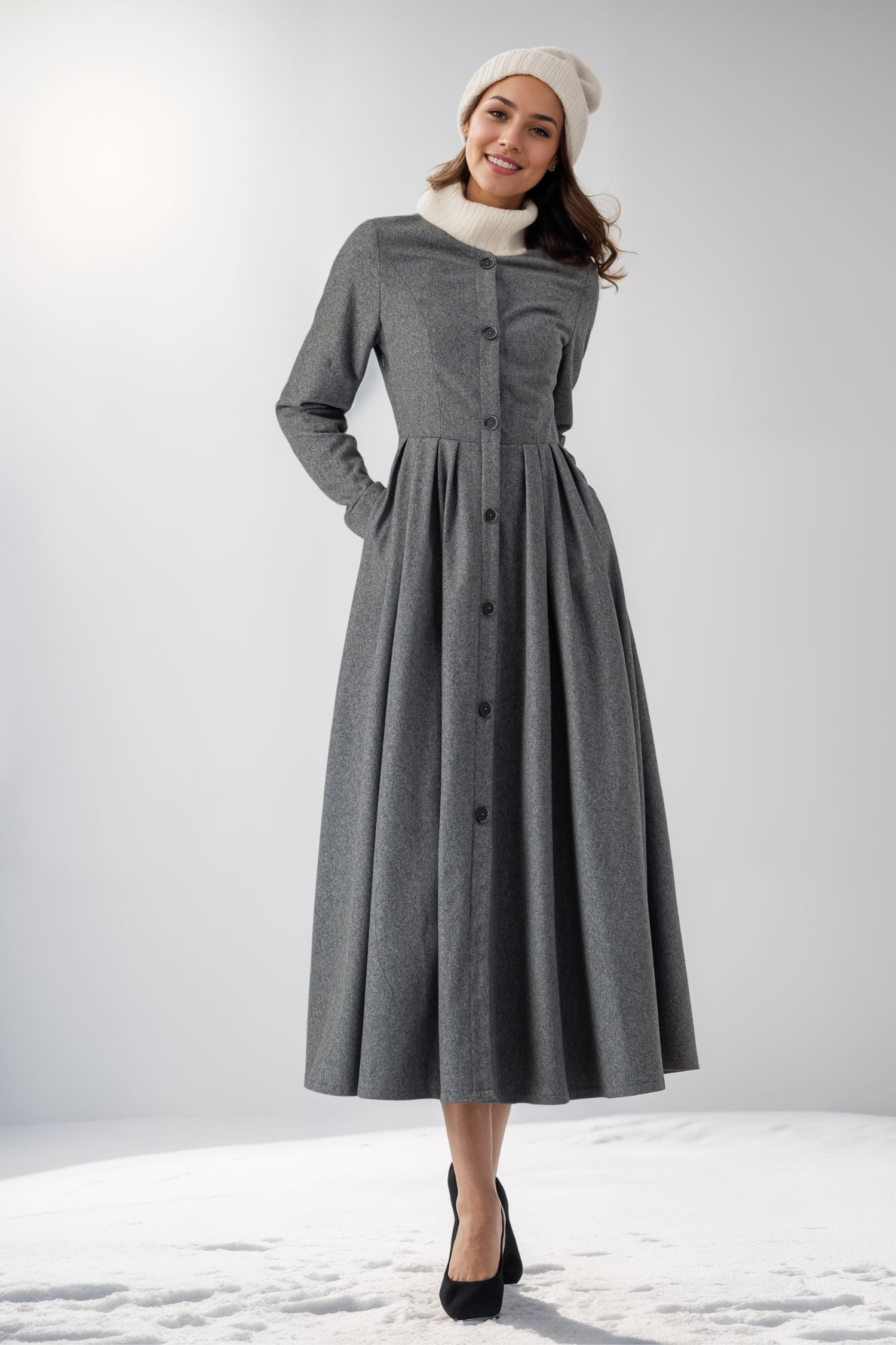 Experience the luxurious warmth and style of our Gray Wool Women Pleated Winter Dresses. Made from premium wool, these dresses feature elegant pleating for a sophisticated and exclusive look. Stay stylish and cozy all season long with this must-have addition to your wardrobe.