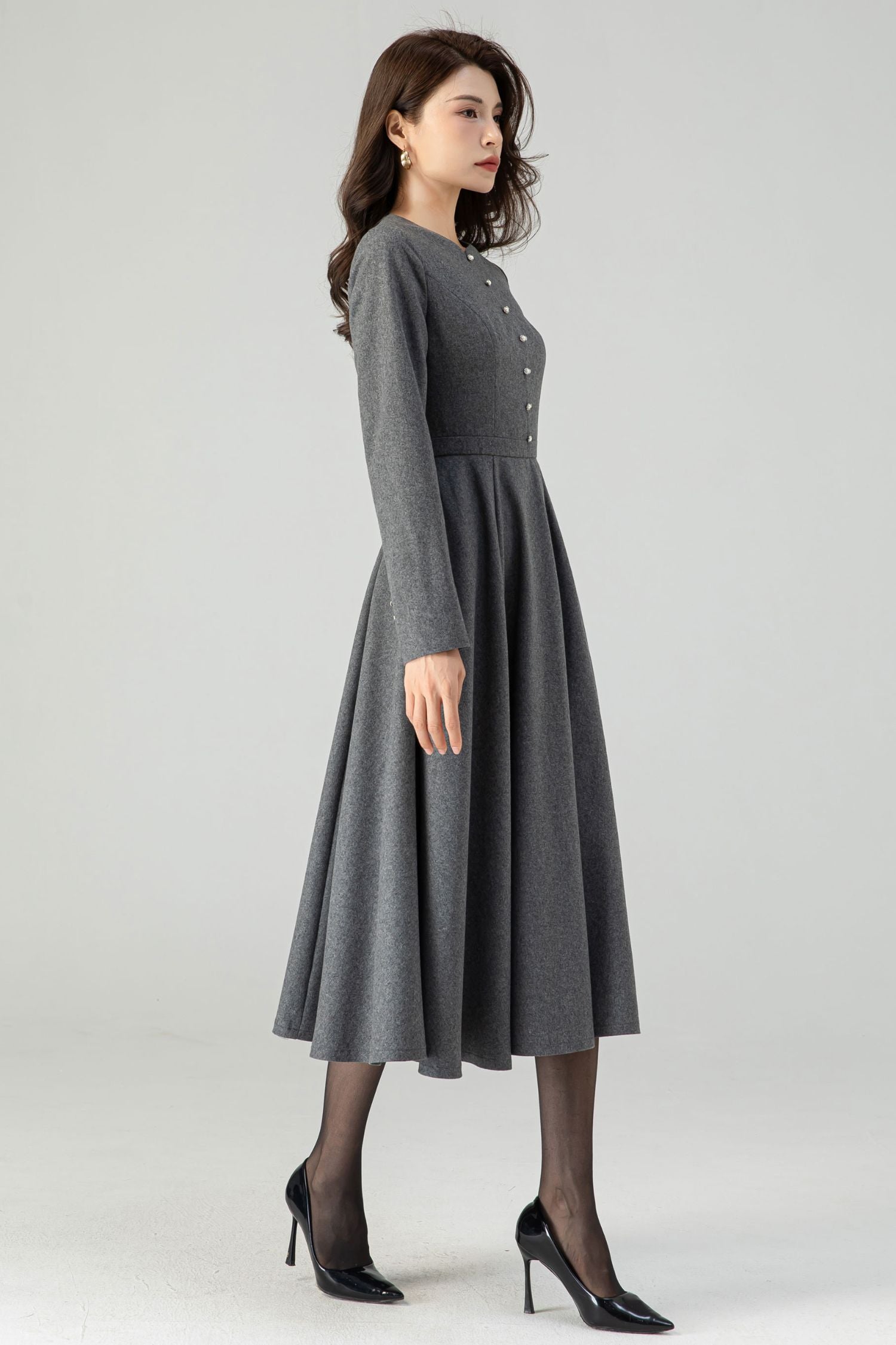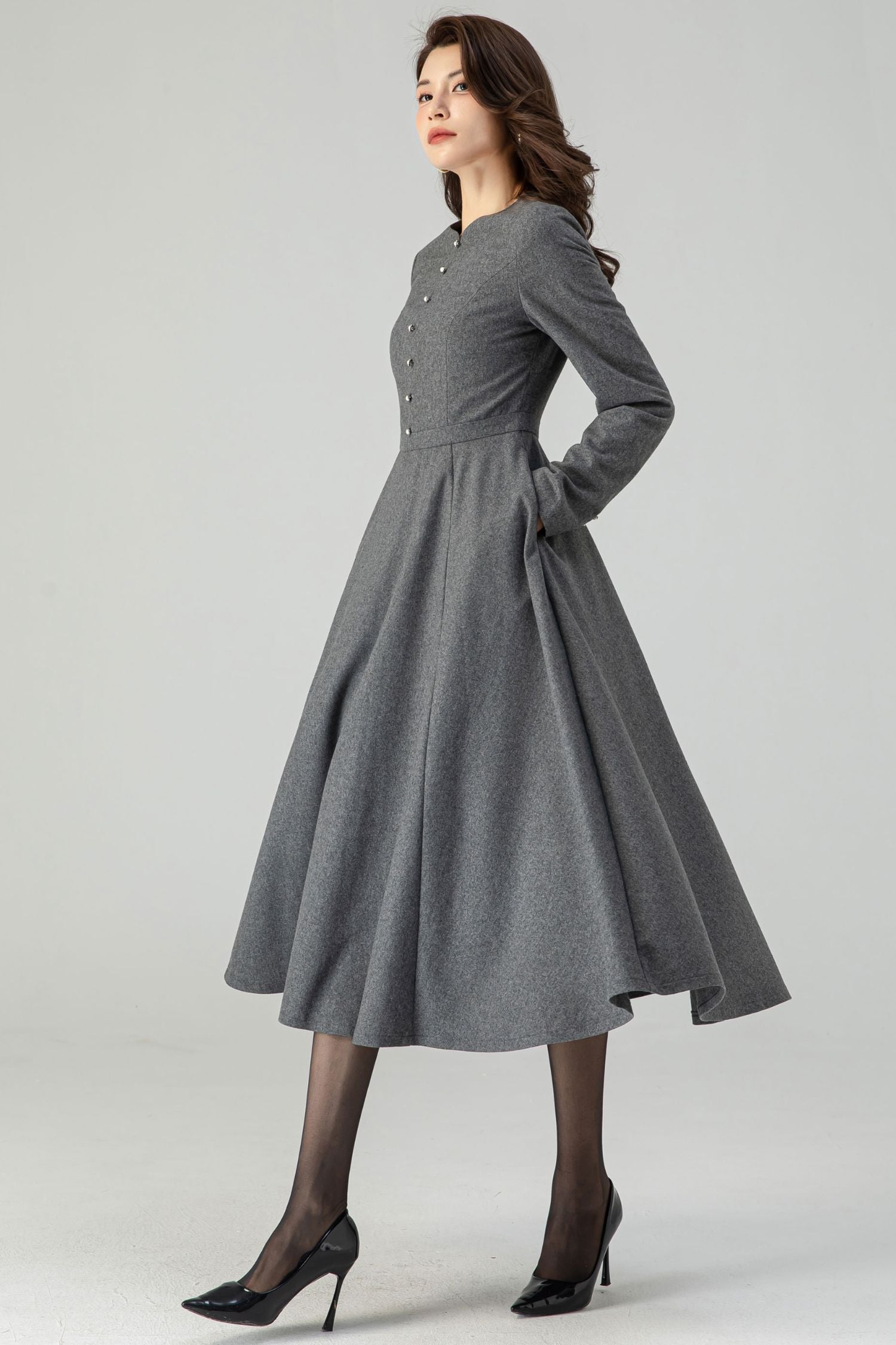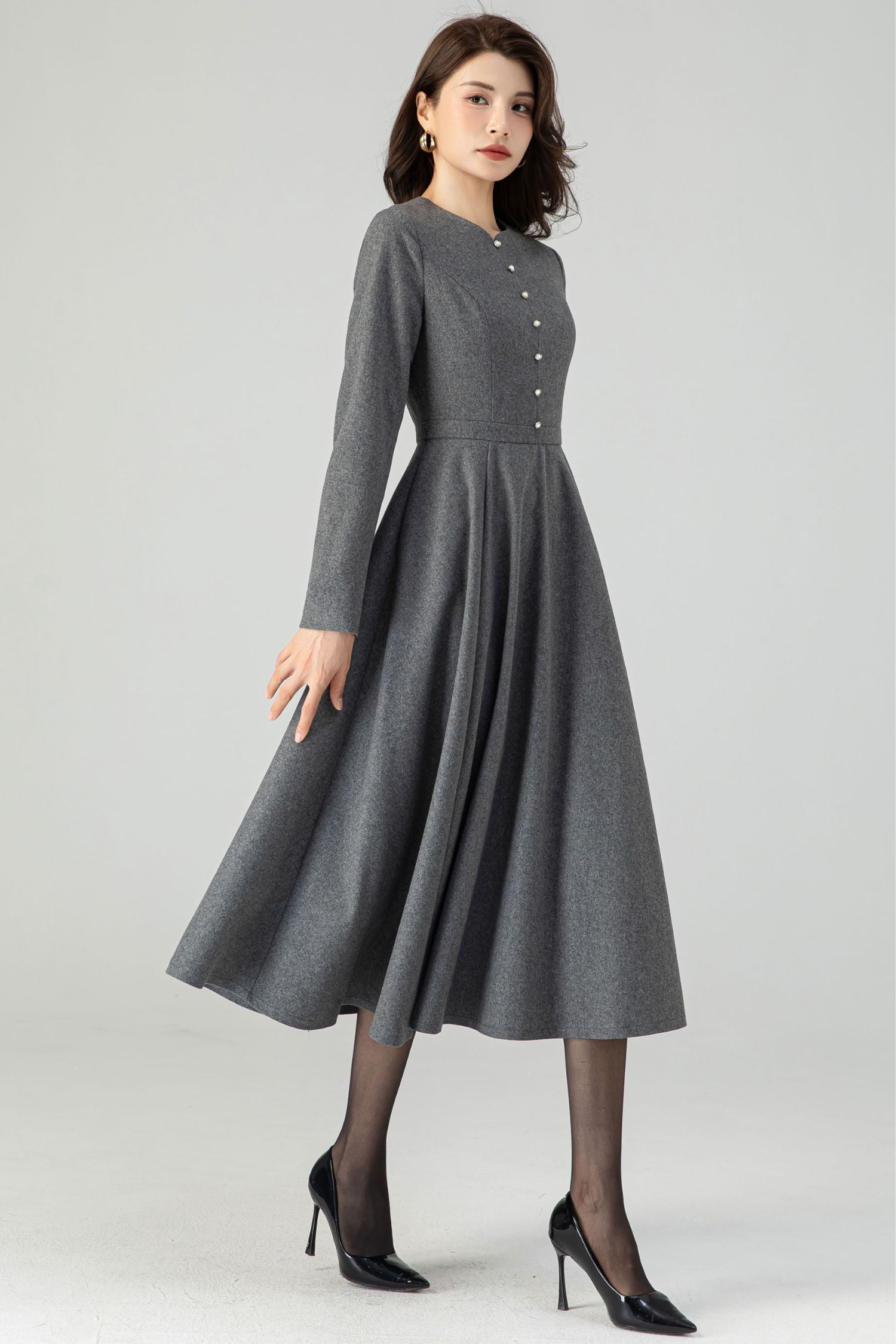 Indulge in the timeless elegance of our Grey Fit and Flare Dress C3613. This luxurious wool dress for women features a flattering fit and flare silhouette, perfect for any occasion. With convenient pockets and a handmade design, this dress seamlessly combines style and practicality. Elevate your winter wardrobe with this sophisticated swing dress.