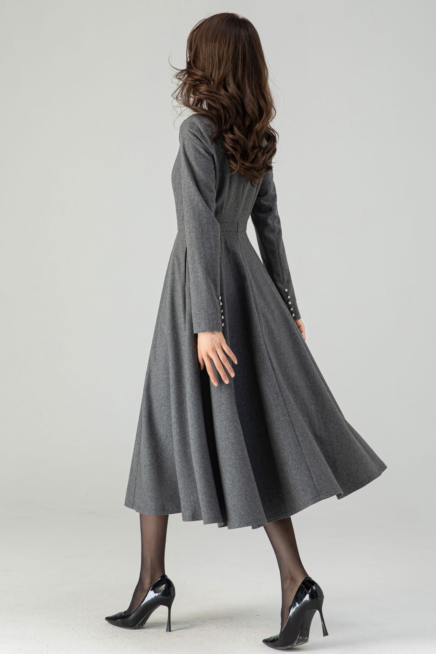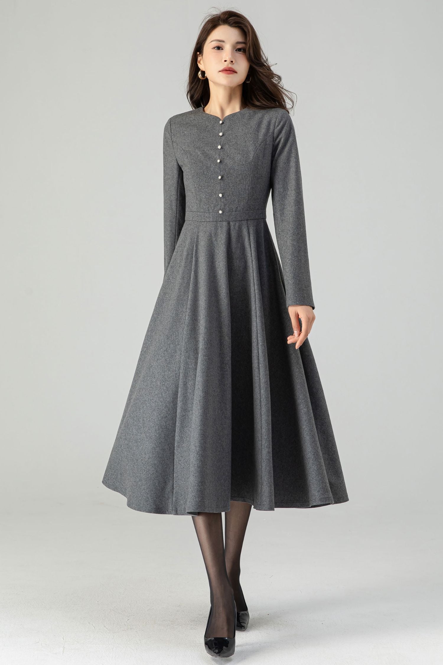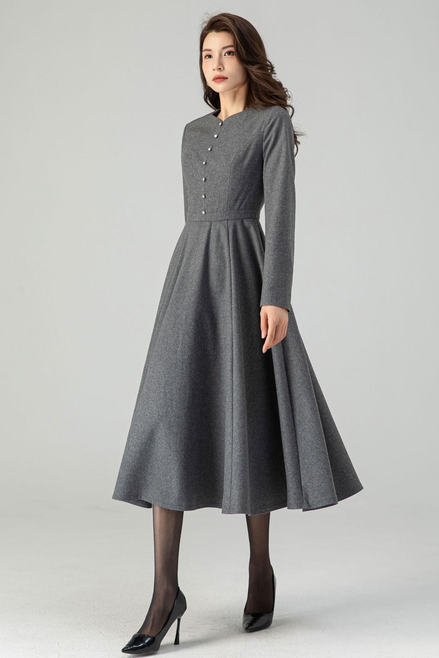 Indulge in the timeless elegance of our Grey Fit and Flare Dress C3613. This luxurious wool dress for women features a flattering fit and flare silhouette, perfect for any occasion. With convenient pockets and a handmade design, this dress seamlessly combines style and practicality. Elevate your winter wardrobe with this sophisticated swing dress.
