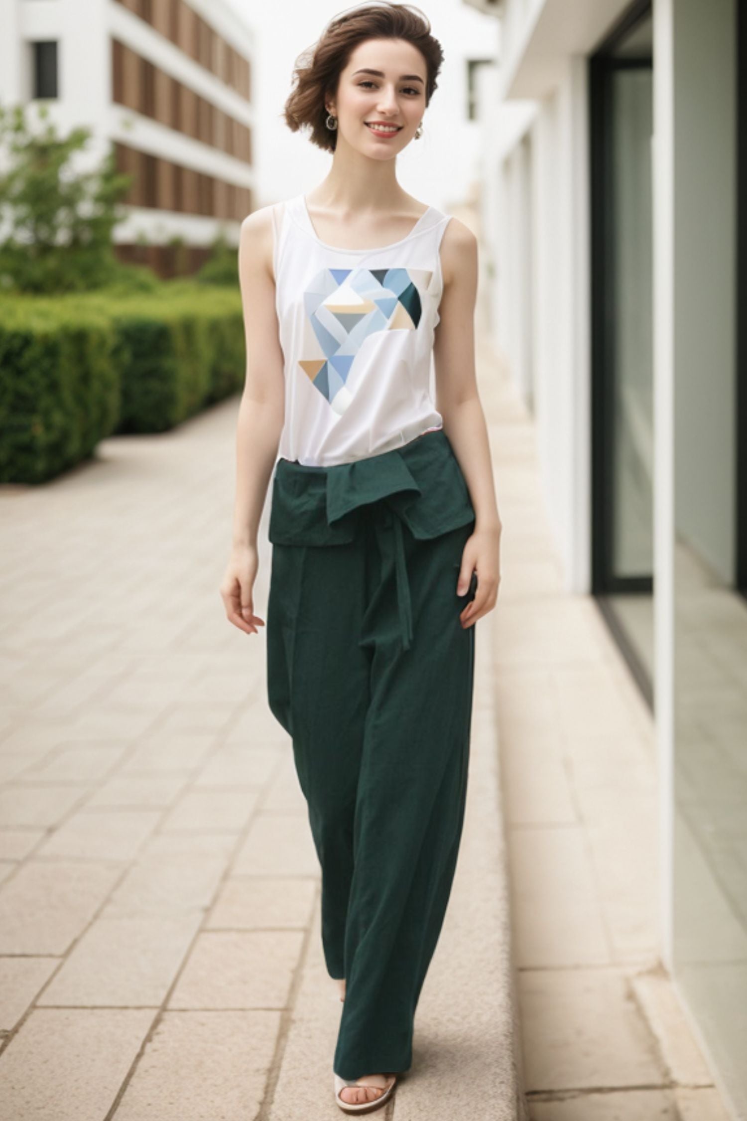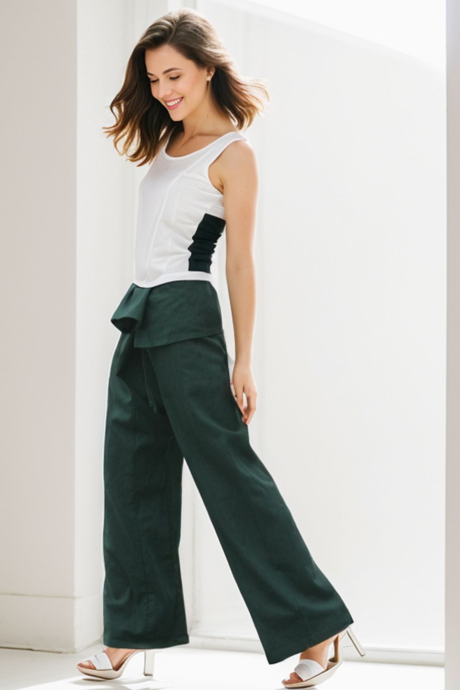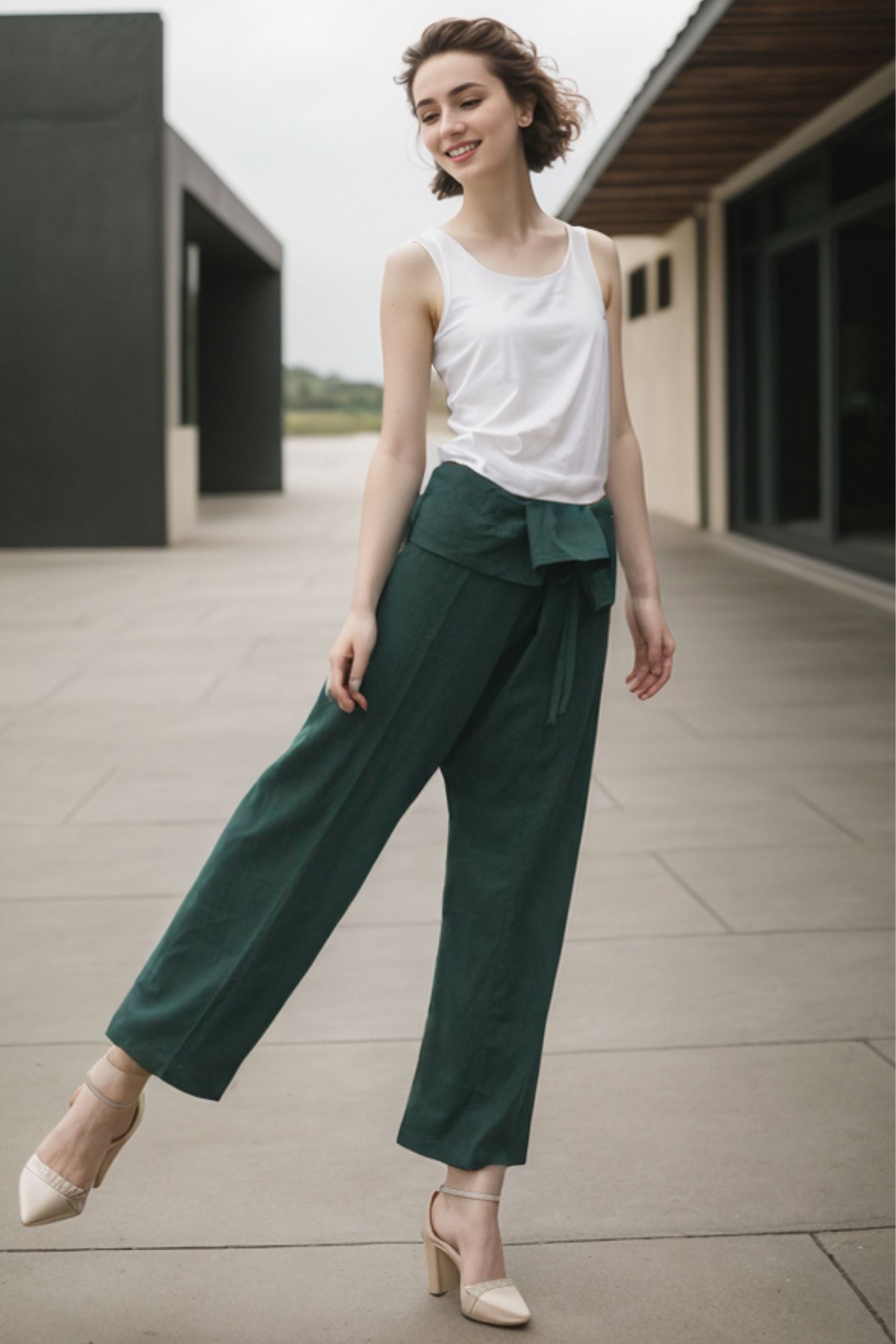 Elevate your wardrobe with our Irregular Waist Green Wide Leg Straight Leg Pants. The unique irregular waist design adds a touch of sophistication while the wide leg cut elongates and flatters your figure. Crafted with premium materials, these pants are a must-have for any fashion-forward individual.