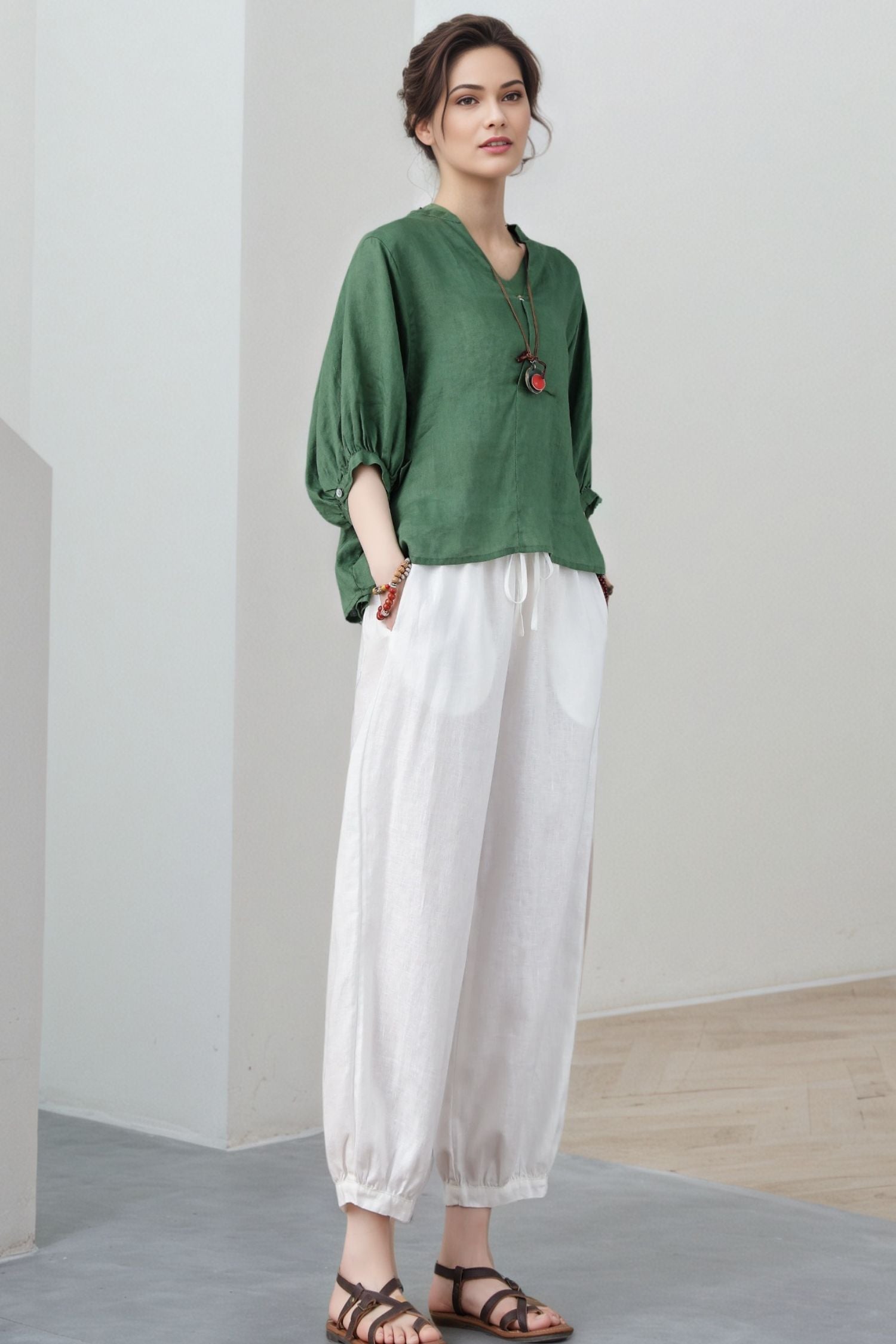 Linen blouse, green linen tops, Linen blouse for women, Oversized Linen top C5319