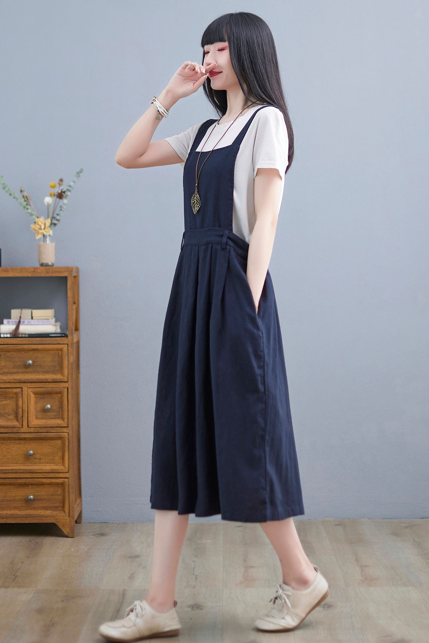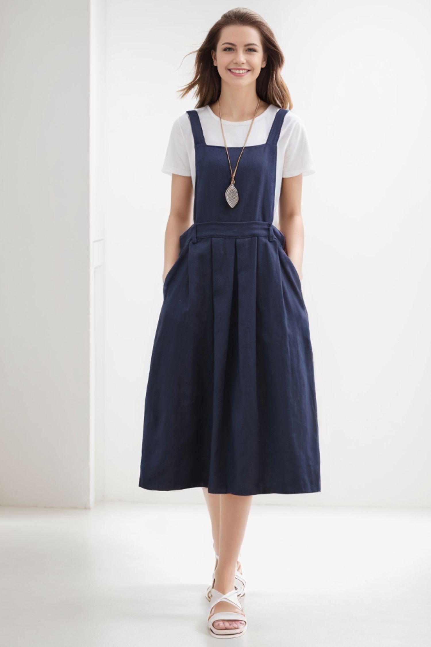 Elevate your wardrobe with our Linen Pinafore Dress. This versatile piece can be dressed up or down, making it a must-have for any occasion. Handmade with high-quality linen, experience unbeatable comfort and style in our A Line Pinafore Dress. Available in a stunning blue color, this midi dress is a wardrobe staple for any fashion-forward woman.