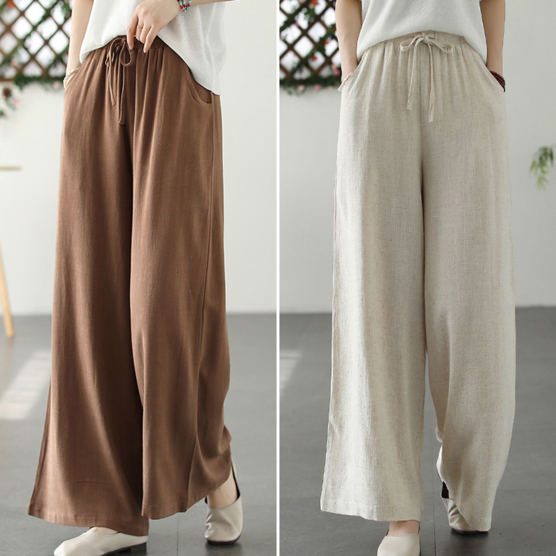 Indulge in luxurious comfort and effortless style with our loose cotton linen solid wide leg pants. Made with a soft and breathable fabric, these pants offer a relaxed fit and a chic design that will elevate any outfit. Perfect for a day out or a cozy night in, these pants are a must-have for any fashion-forward individual.