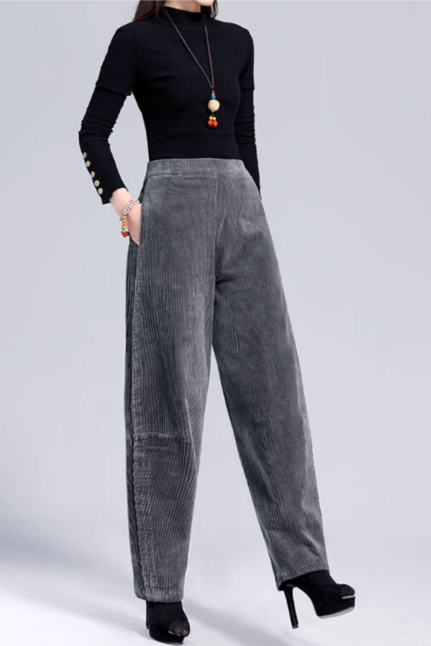 Elevate your winter wardrobe with our luxurious corduroy pants. Featuring a loose fit, these pants are both comfortable and stylish. Perfect for the colder months, they will keep you warm and fashionable. Upgrade your winter look with our loose fitting winter corduroy pants for women.