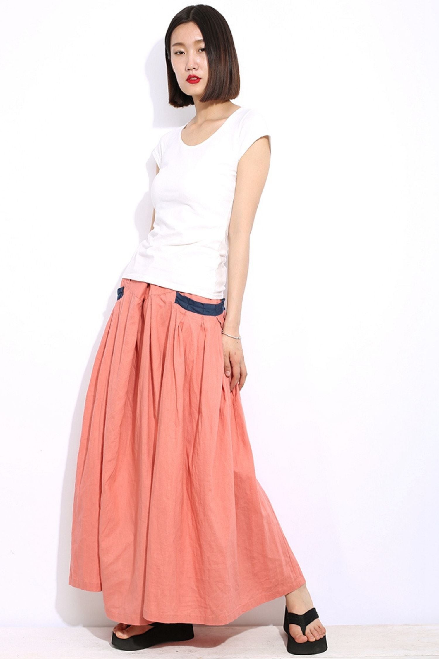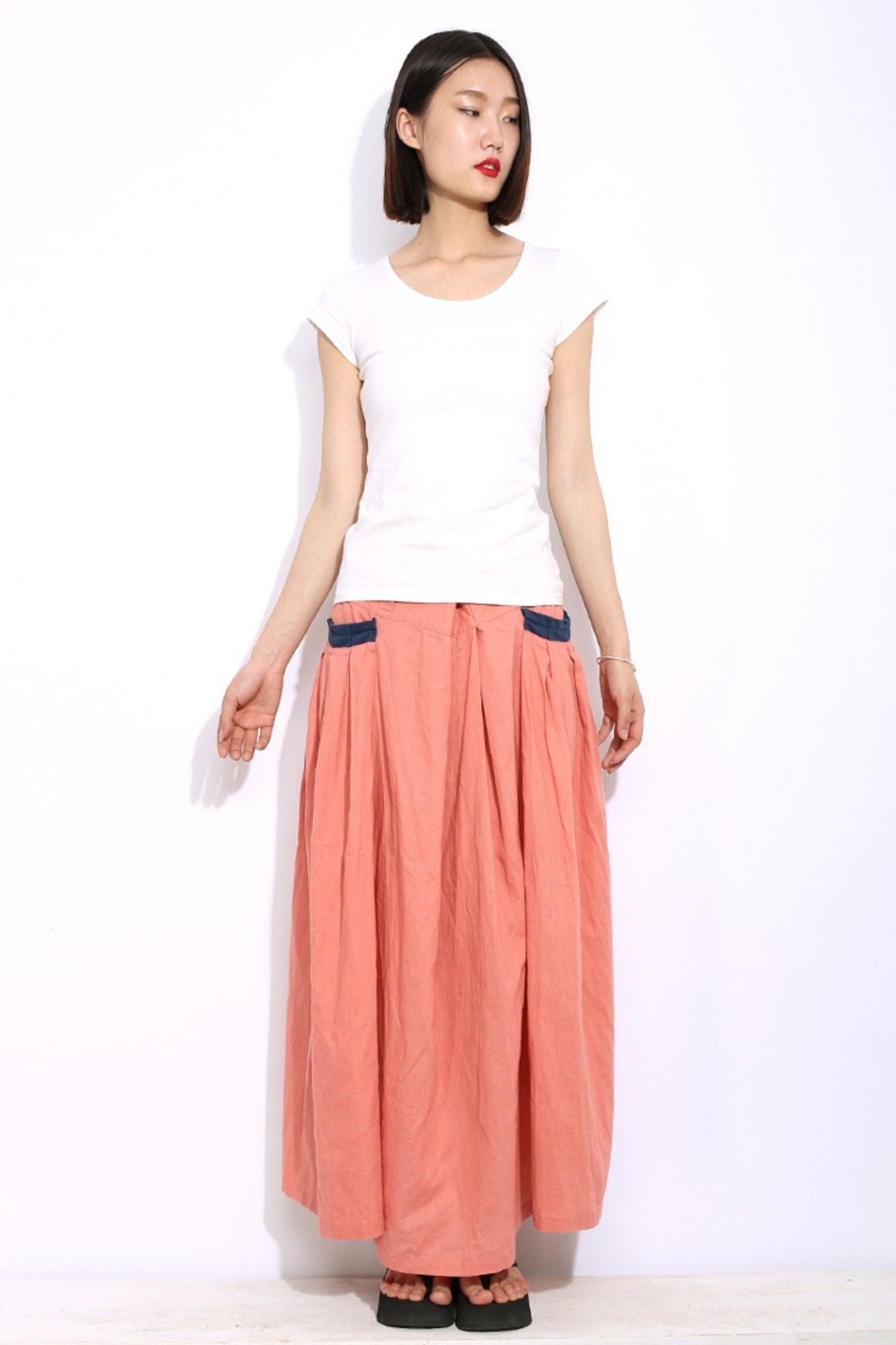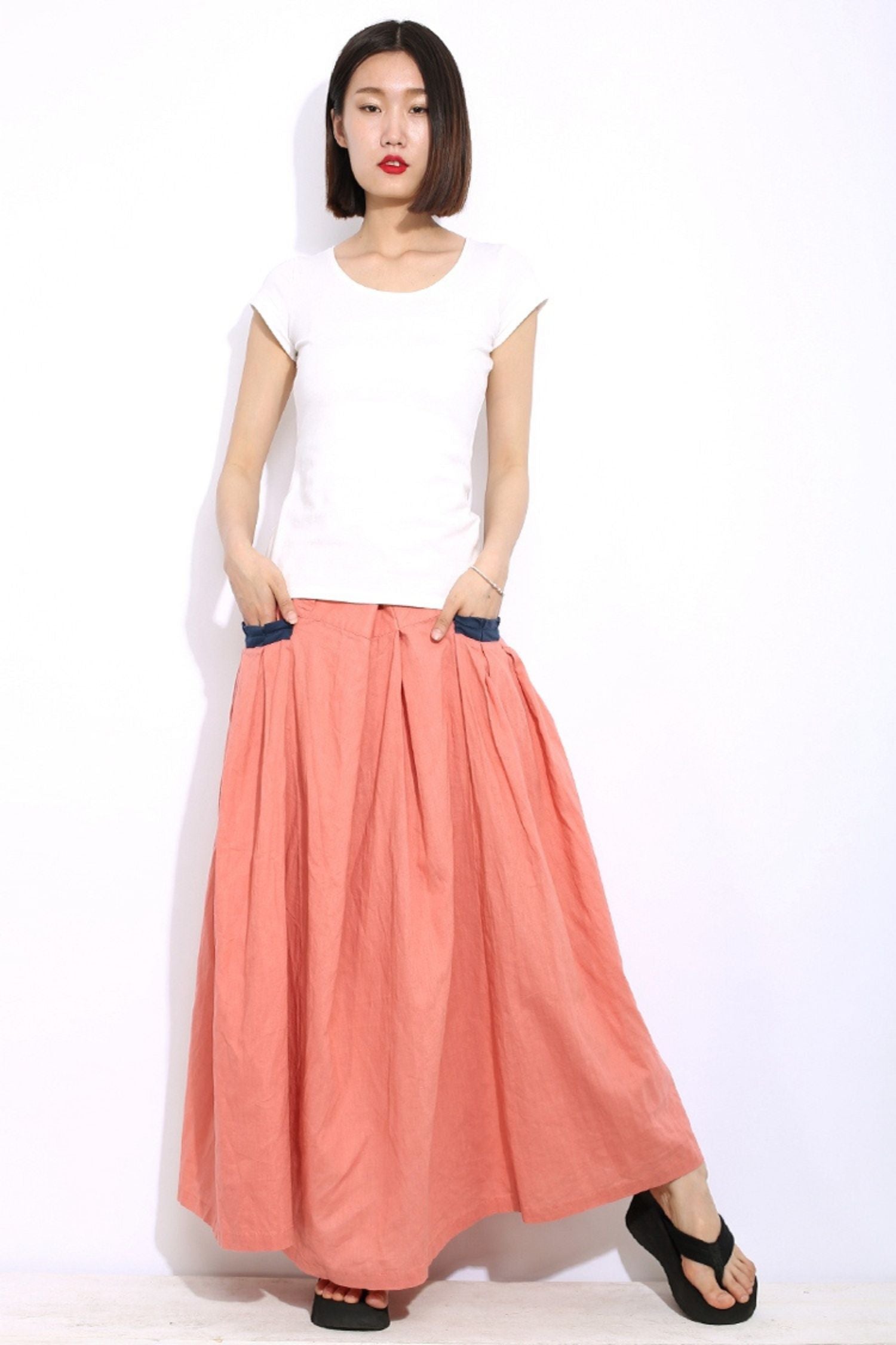 Maxi long linen skirt C337