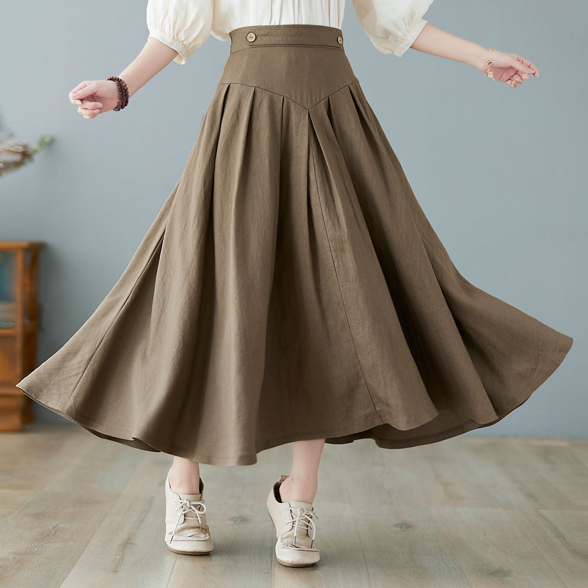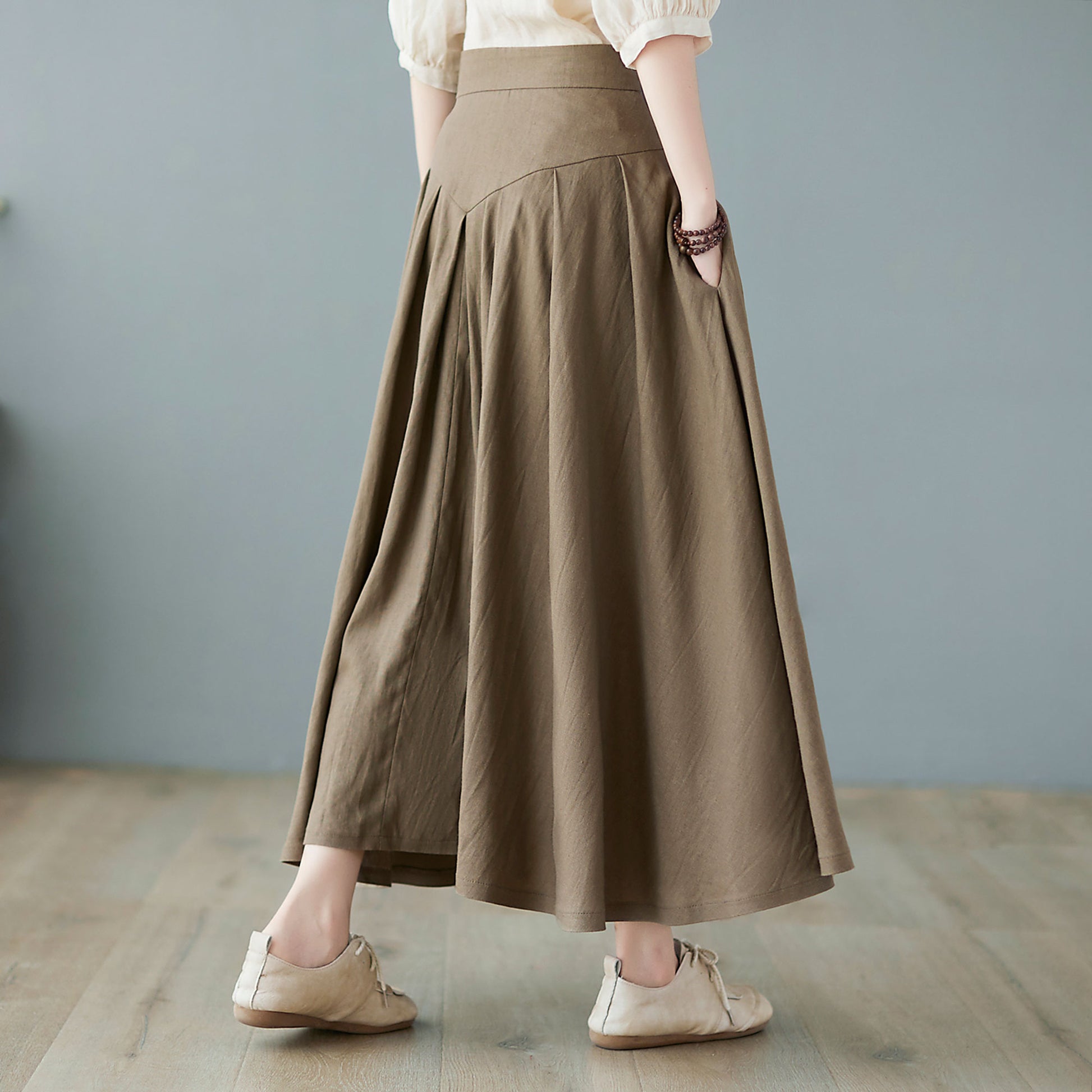 Midi linen skirt, pleated skirt women C2371