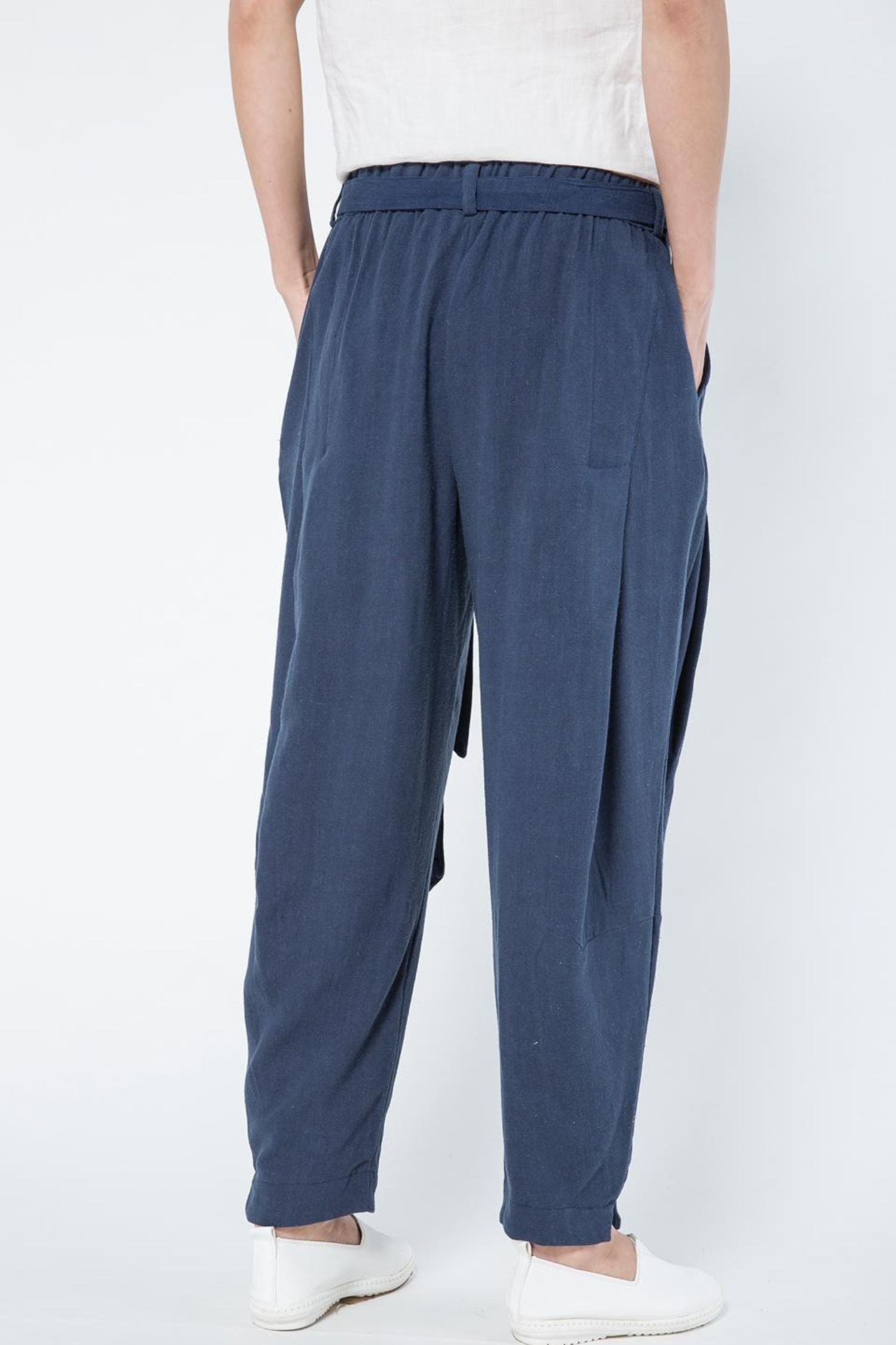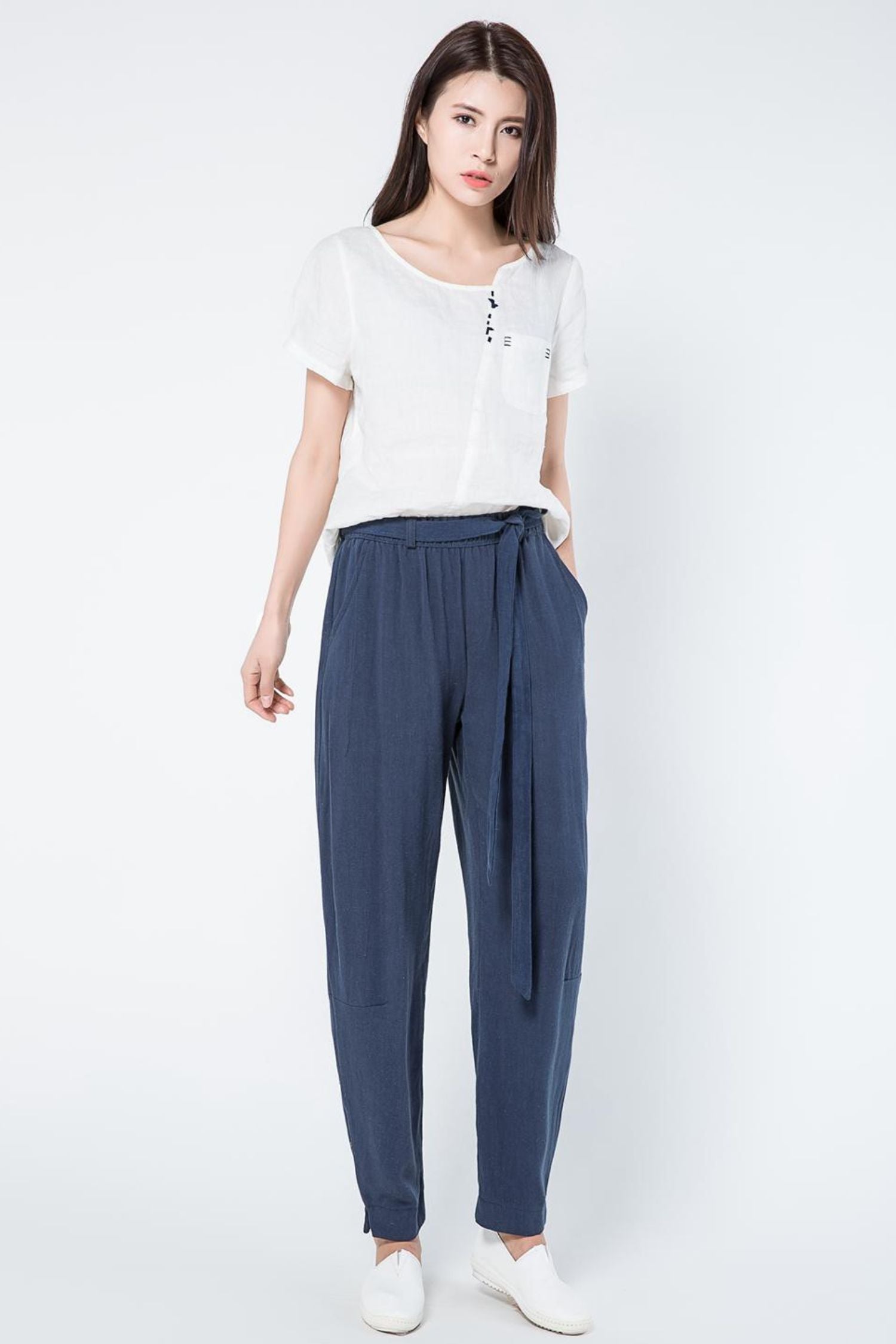 Elevate your style game with our navy blue linen harem loose casual pants! Made from high-quality linen, these pants are both comfortable and chic. Perfect for a casual day out or a night on the town. Upgrade your wardrobe and make a statement with our C1106 pants. Order now!
