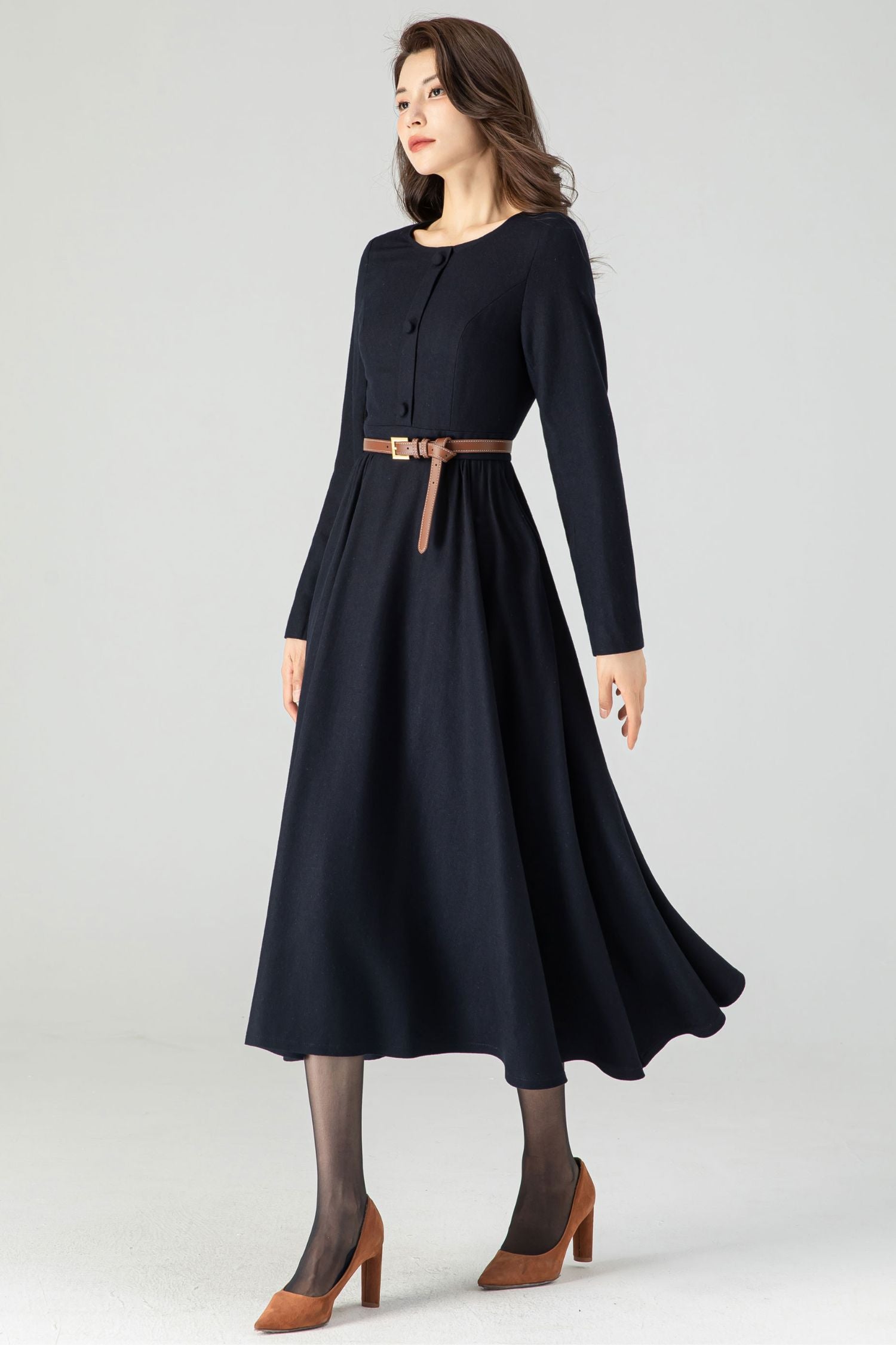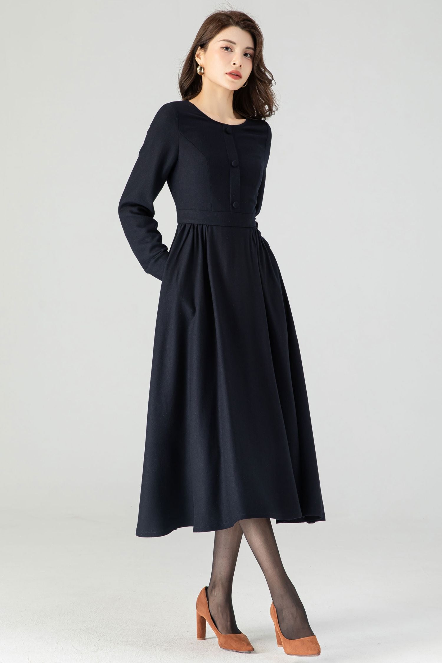 Indulge in luxury with our Navy Blue Midi Wool Dress C3616. Handcrafted with the finest wool, this dress exudes sophistication and elegance. The classic navy blue color and fit and flare silhouette make it a timeless piece for your winter wardrobe. Elevate your style with this exquisite handmade dress.