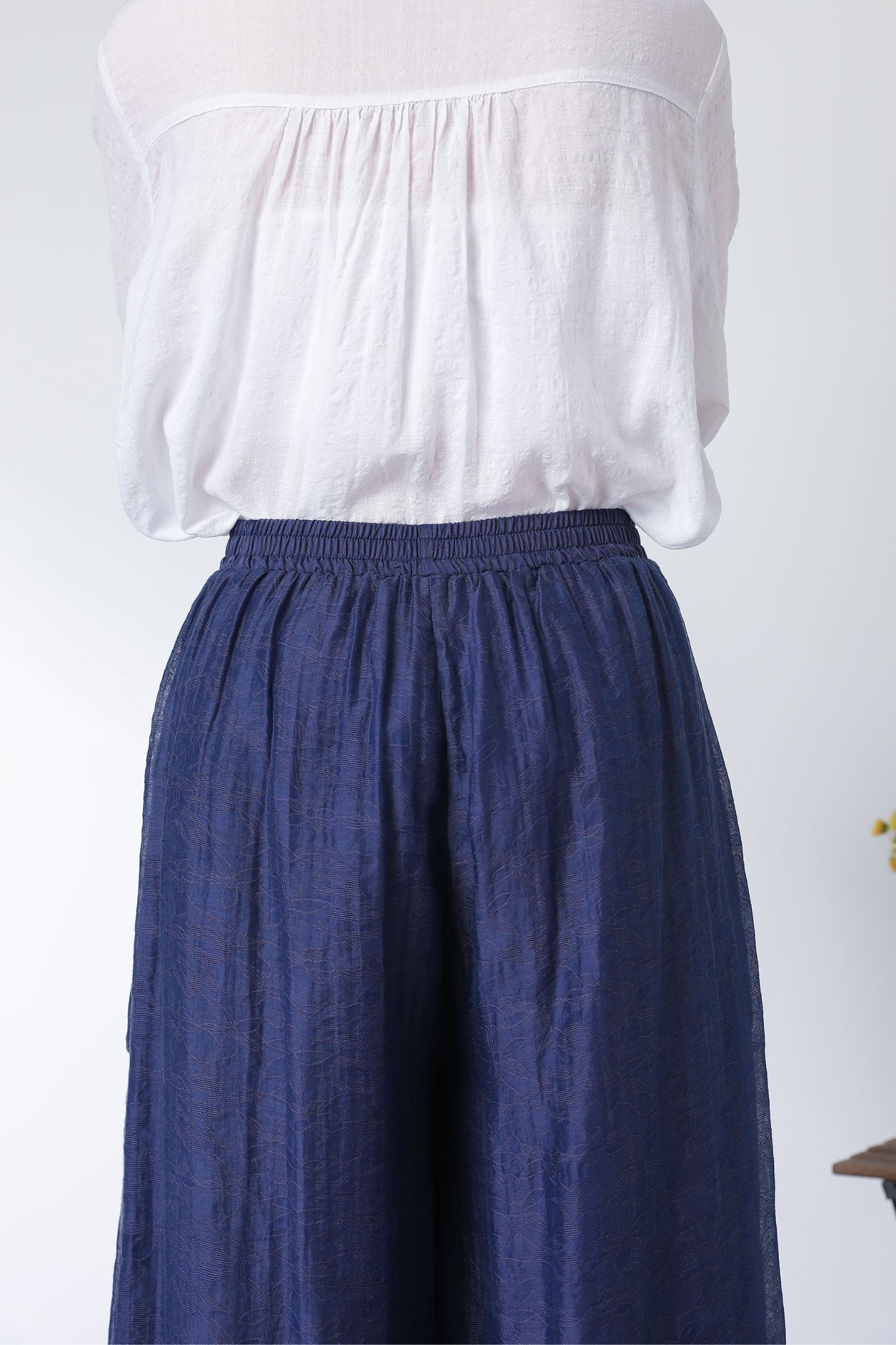 Elevate your summer style with our Navy Wide Legs Elastic Waist Pants C3330. Handmade for a perfect fit, these loose-fitting pants provide ultimate comfort with their elastic waistband. Designed with a midi length and wide legs, these pants are perfect for any casual occasion. Embrace effortless sophistication with these summer trousers.