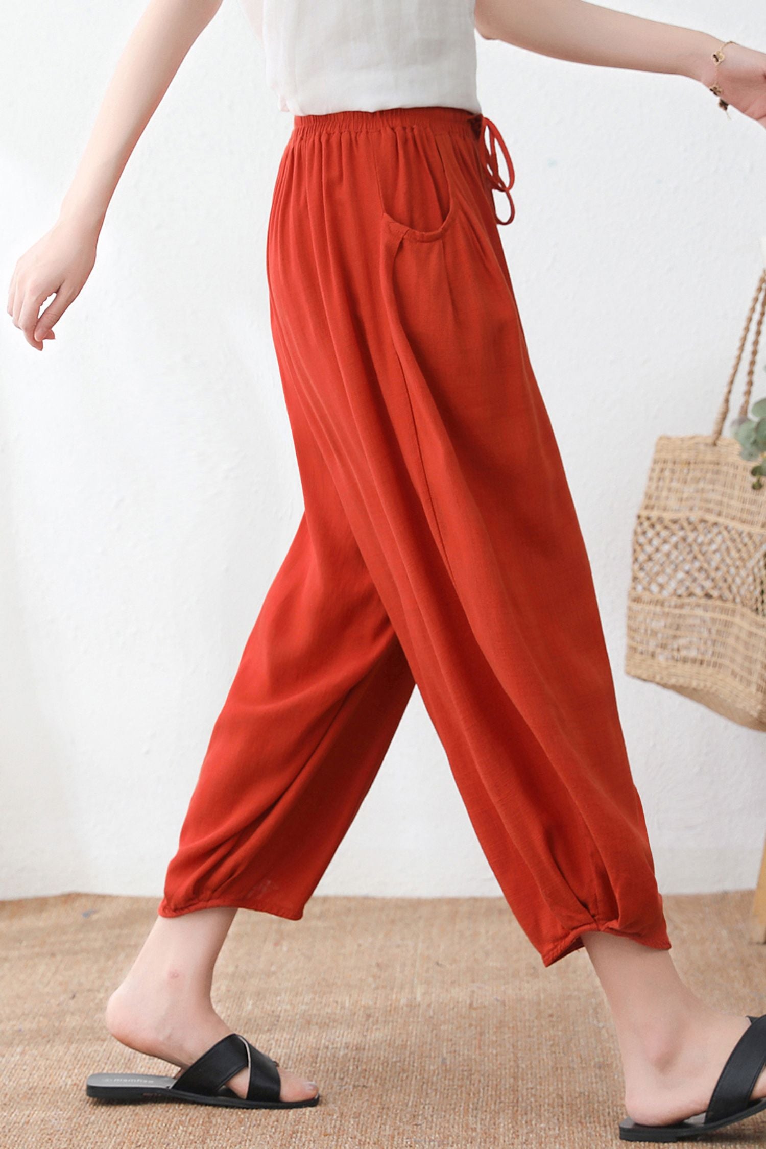 Experience ultimate comfort and style with our Orange Linen elastic waist drawstring pants! Made of high-quality linen, these pants are perfect for any occasion. The elastic waist and drawstring provide a customizable fit, while the vibrant orange color adds a touch of fun to your wardrobe. Upgrade your look today!