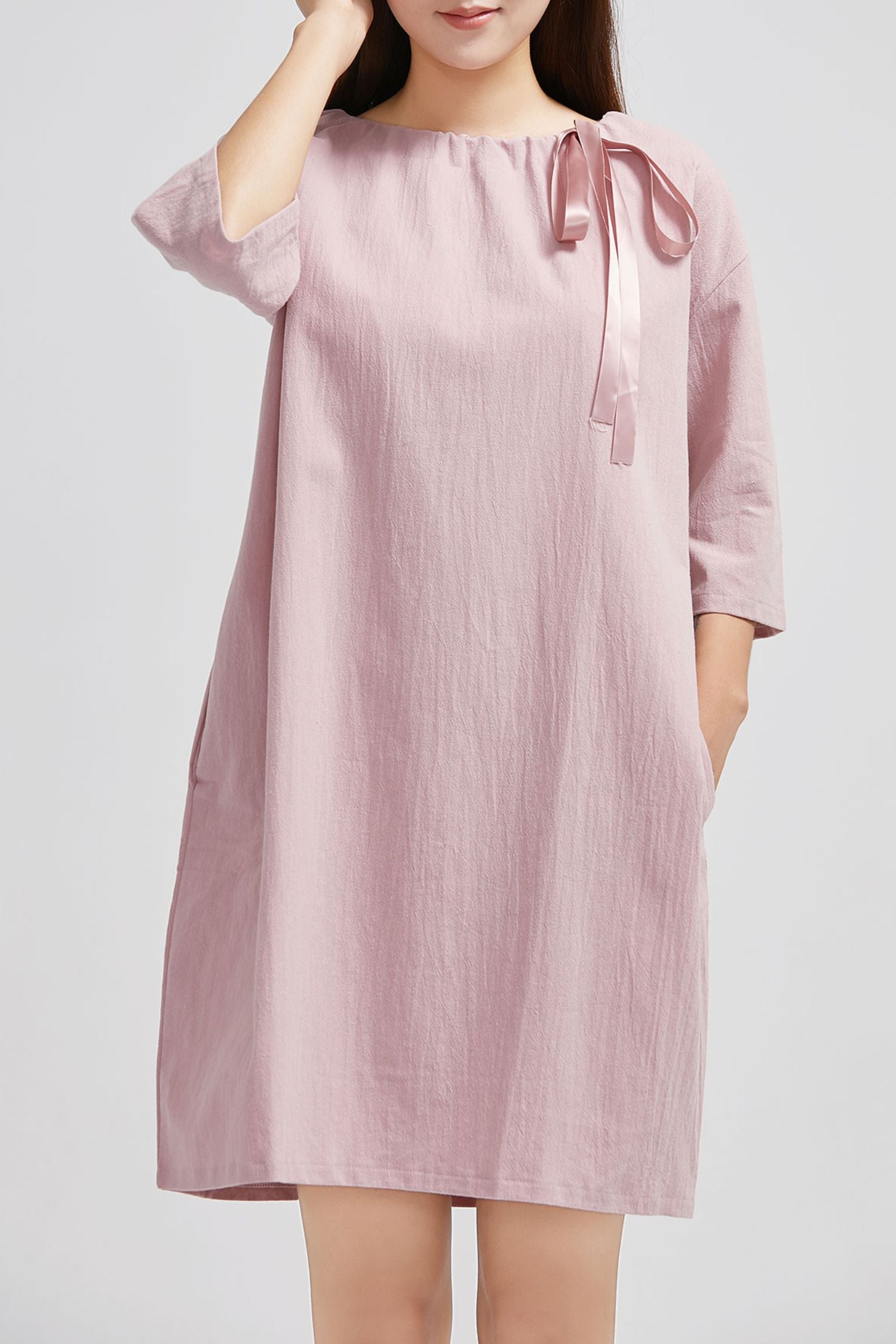 Pink Five Sleeve Linen Dress C1633