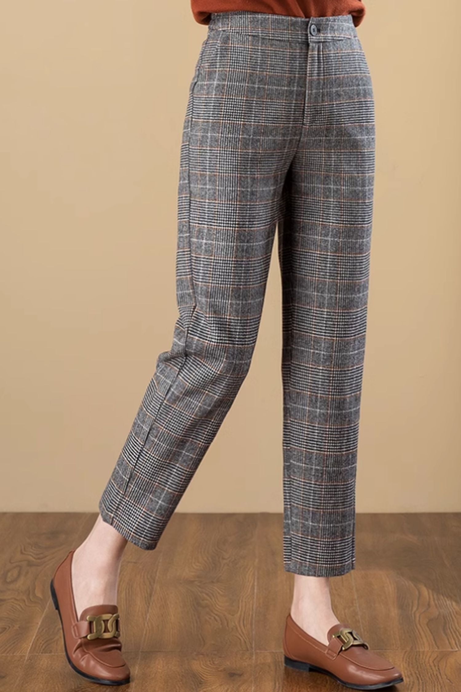 Stay warm and stylish this winter with our Plaid Wool Pants for Women! Made from high-quality wool, these pants are perfect for cold weather. With a classic plaid design, they are sure to elevate any outfit. Don't sacrifice fashion for comfort - stay cozy and chic with our winter wool pants!