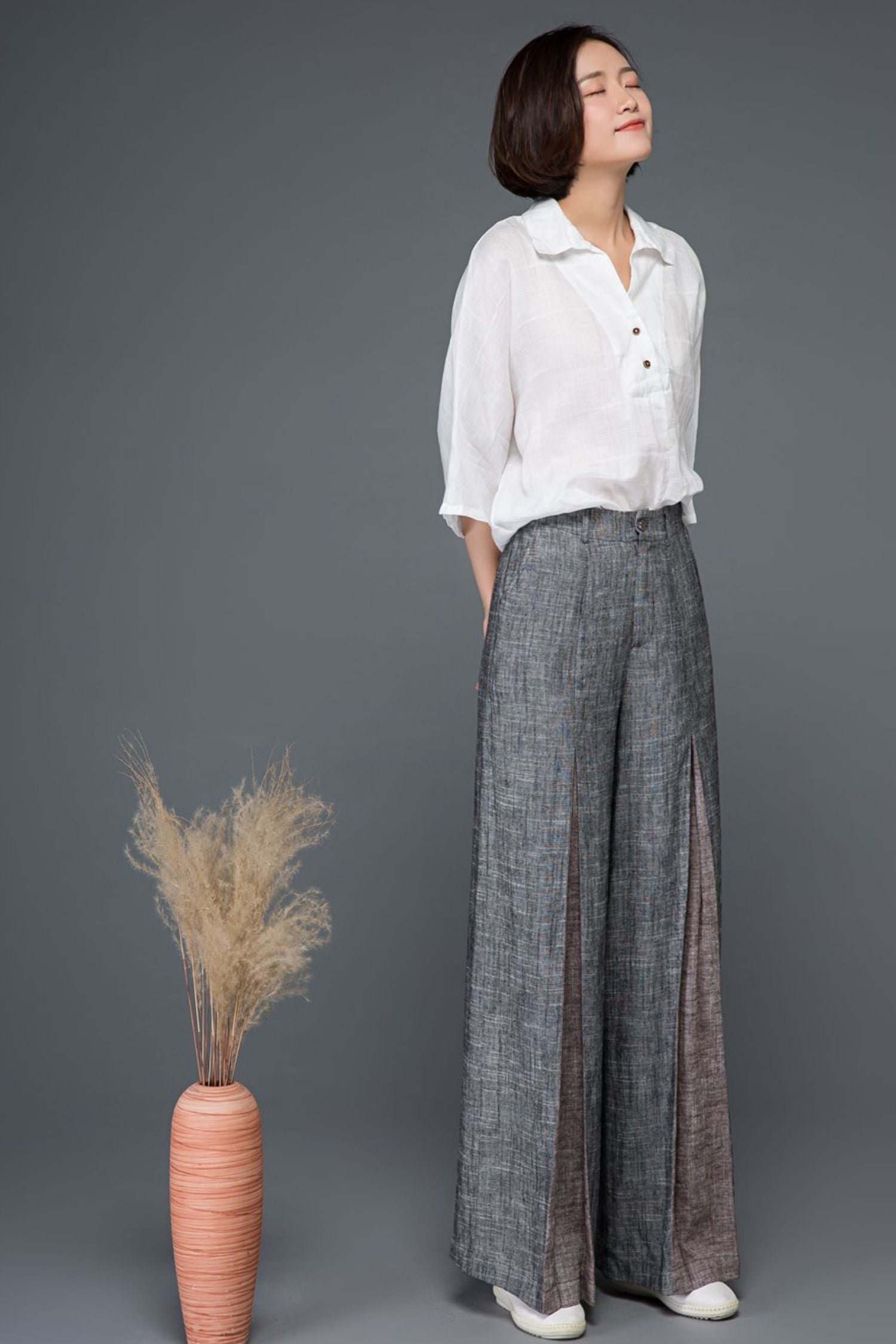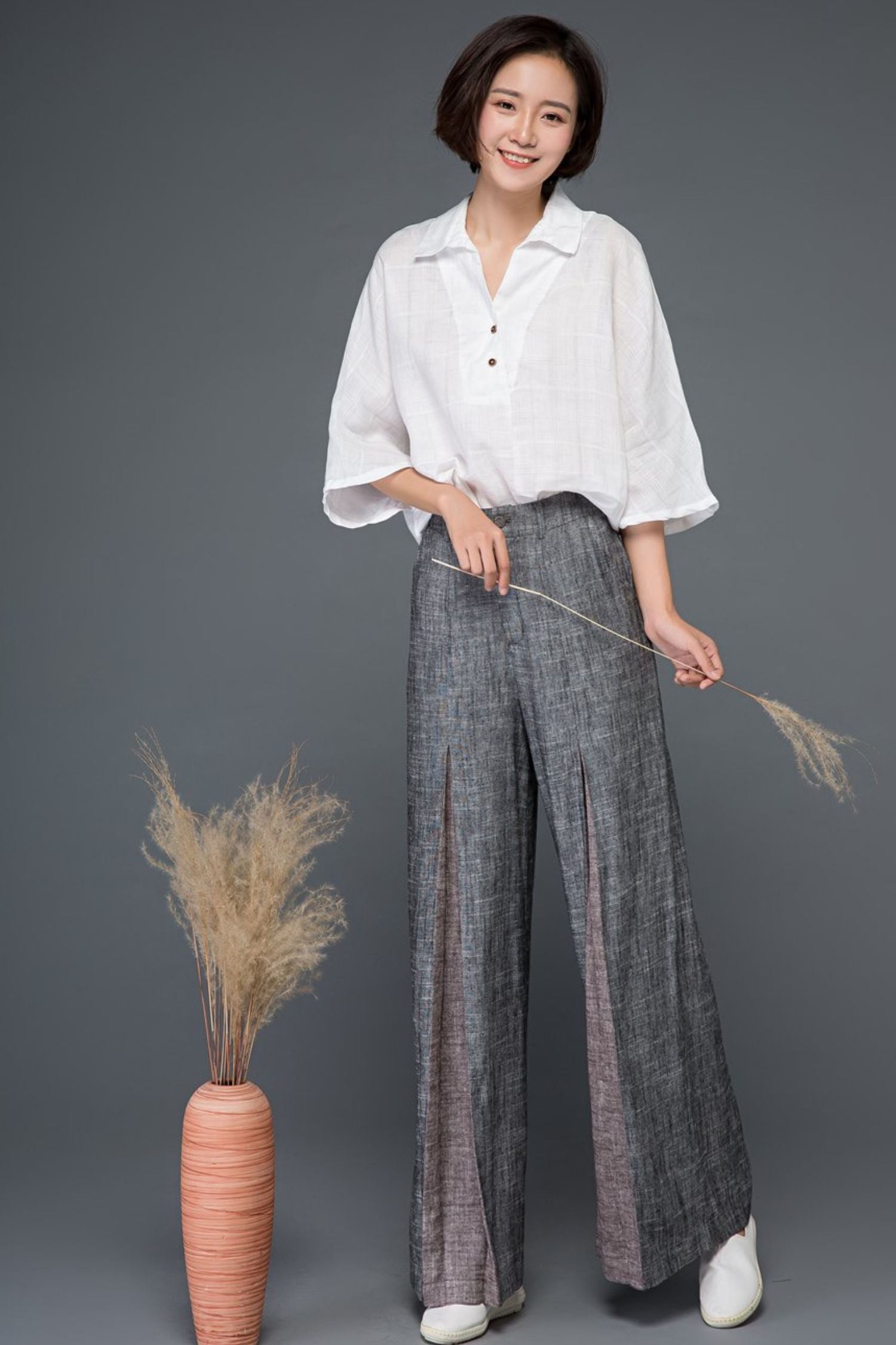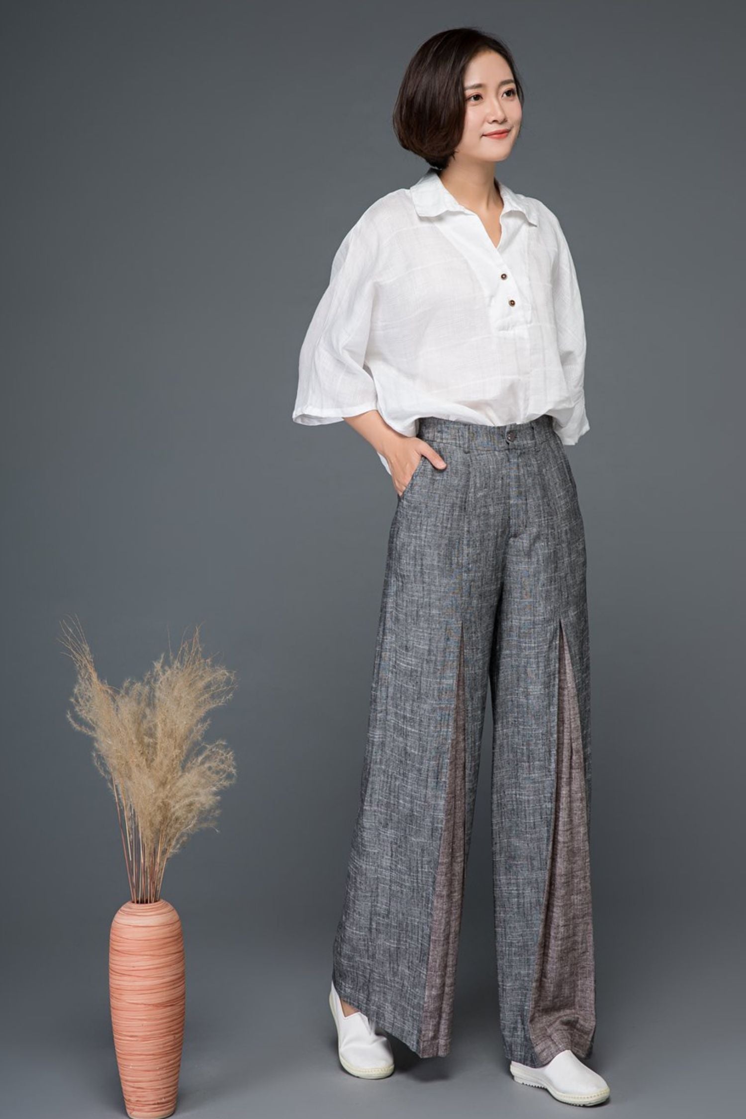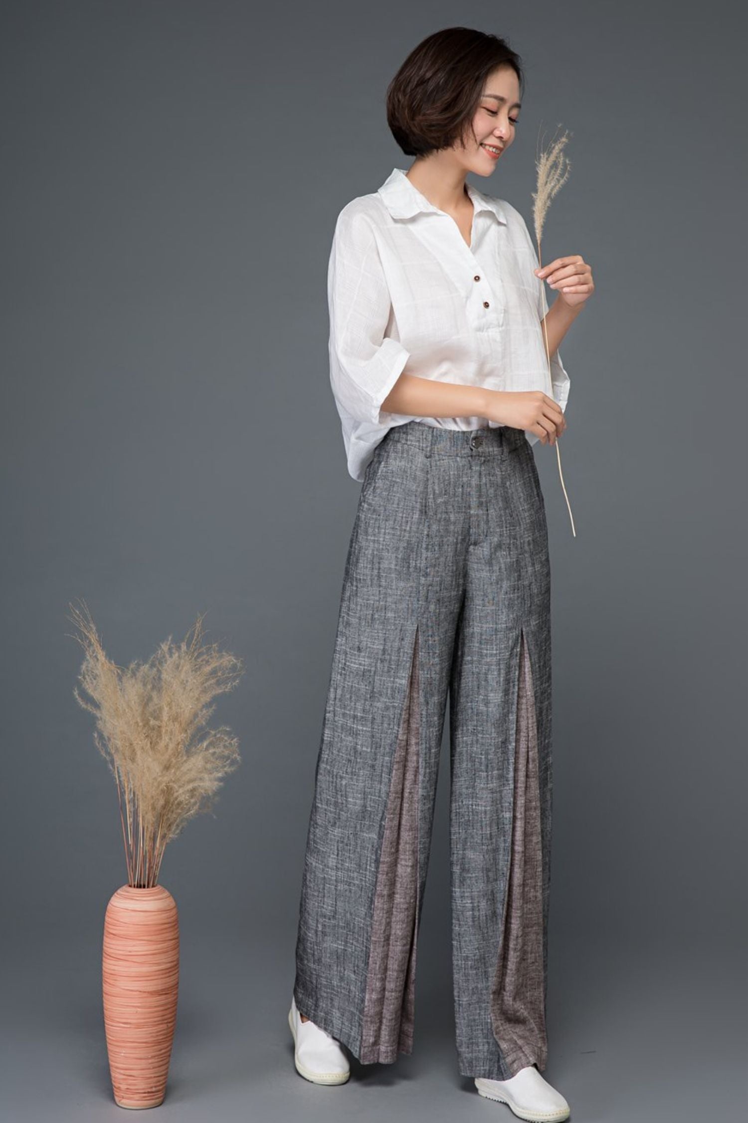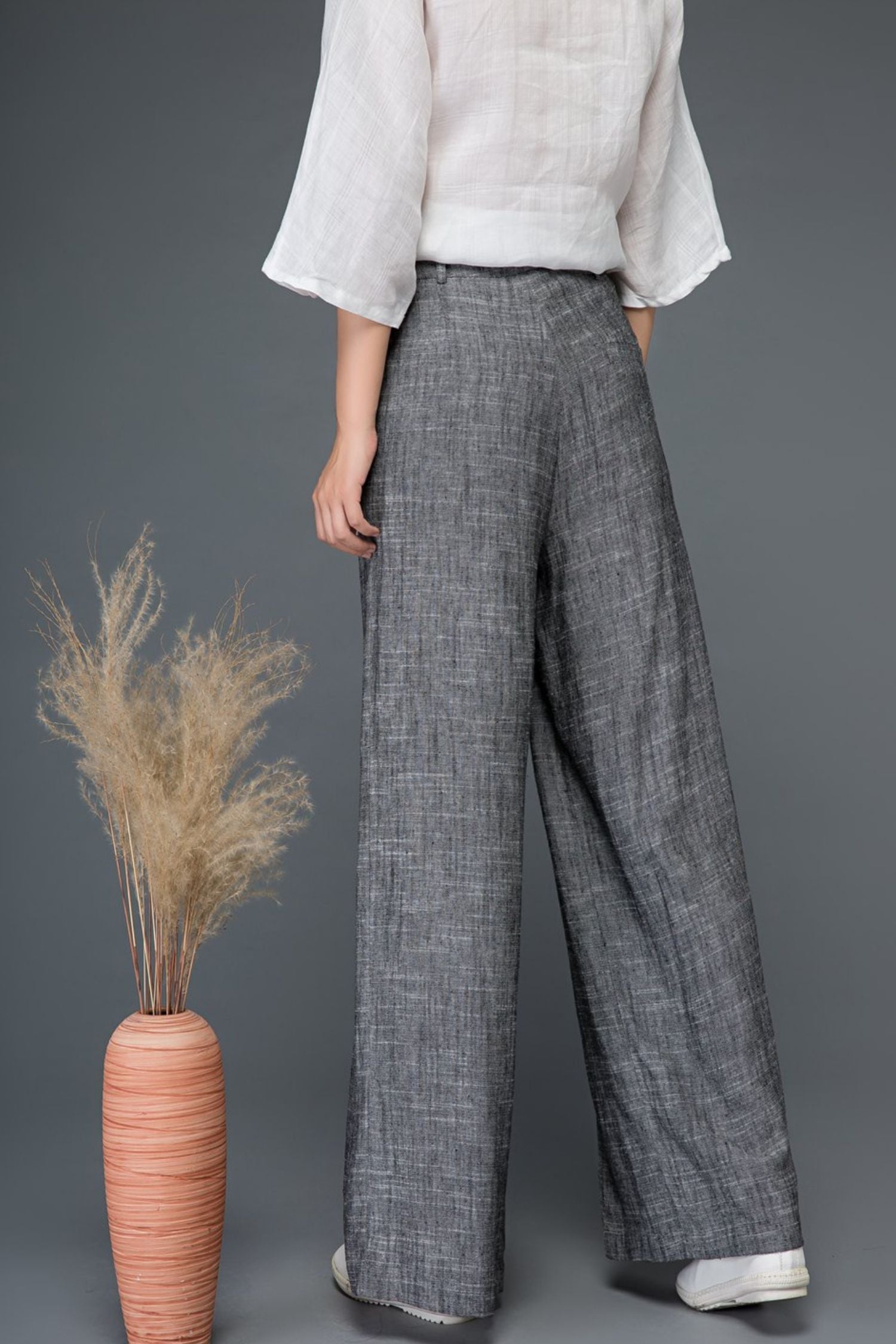 Elevate your wardrobe with our pleated linen womens wide leg pants! Crafted with luxurious linen, these pants offer a stylish and comfortable fit. The pleated design adds a touch of elegance, while the wide leg provides a breezy and flowy feel. Perfect for any occasion, these pants are a must-have for every fashion-forward woman.