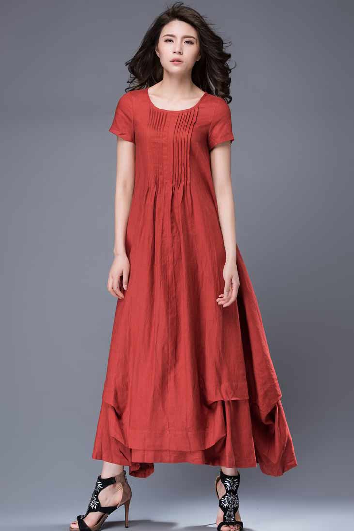 Glide through gardens with grace in this exquisite red linen dress. With a loose-fitting style and relaxed vibe, this beautiful dress will capture the heart from the moment you're adorned in its elegant charm.